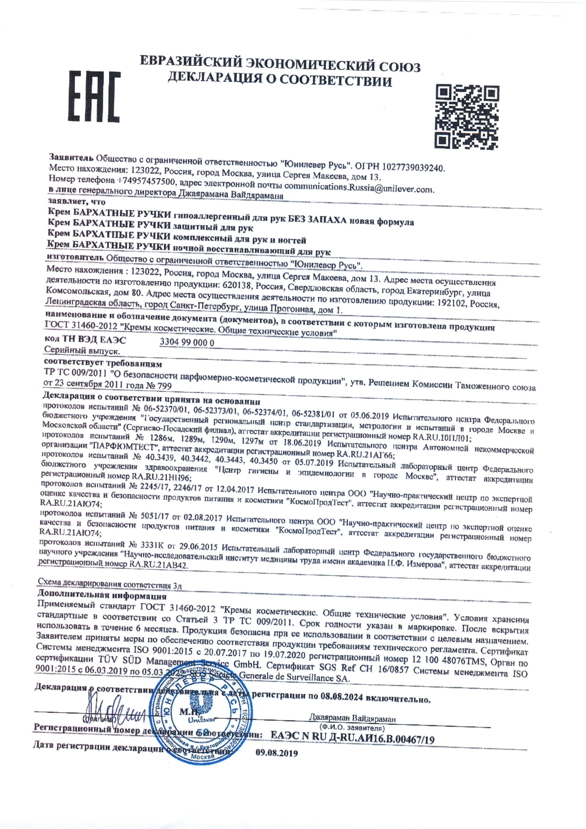 Сертификат на товар - Крем для рук Бархатные ручки Защитный 80 мл