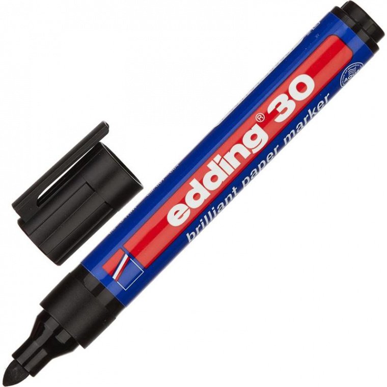 Пигментный маркер в пластиковом корпусе. Пулевидный наконечник обеспечивает толщину линии от 1,5 до 3 мм. Цвет — черный.