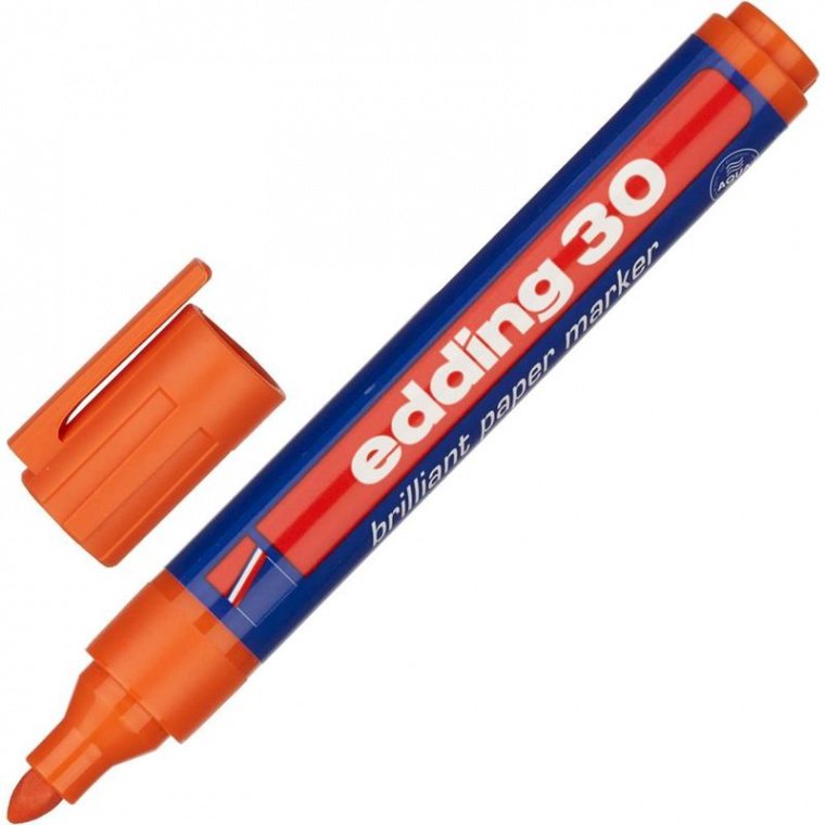 Пигментный маркер в пластиковом корпусе. Пулевидный наконечник обеспечивает толщину линии от 1,5 до 3 мм. Цвет — оранжевый.