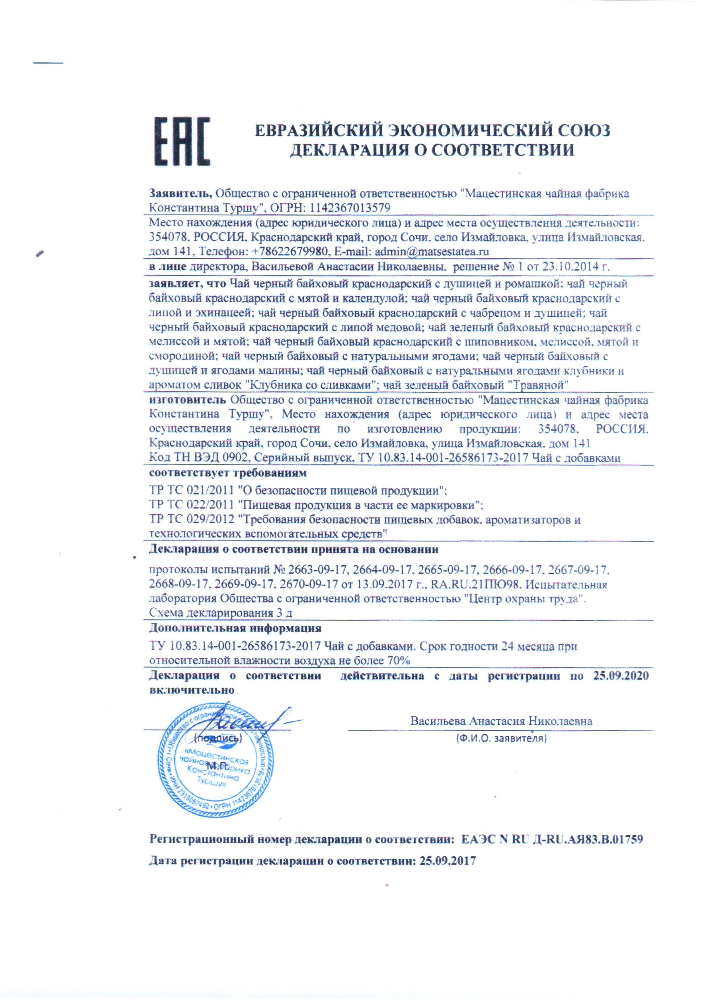 Достойный уровень качества, пользы и вкуса сделали его одним из любимчиков среди чайных напитков большого количества ценителей, которые с удовольствием наслаждаются чаем отечественного производства. Приятный, бархатный настой станет отличным сопровождением необходимых перерывов в течение дня как в офисе, так и дома. Начиная свой день с чашки чудесного чая, гораздо легче настроиться на удачу и выполнение важных дел, которые требуют смелости и уверенности в собственных силах.