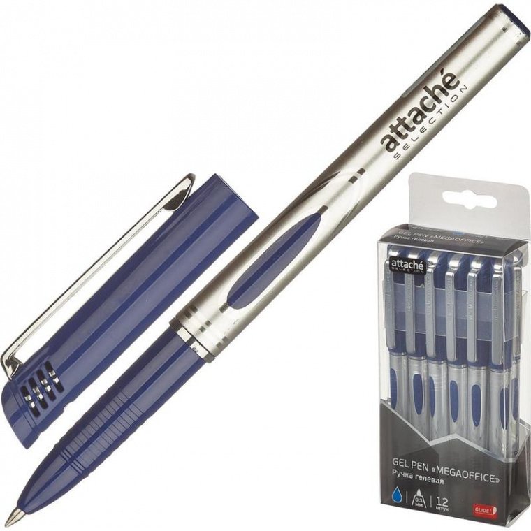 Ручка гелевая неавтоматическая Attache Selection Glide Megaoffice. Ручка, созданная по революционным технологиям с использованием материалов высшего качества, обеспечивает мягкое и качественное письмо за счет использования уникальных гелевых чернил Quick Dry, которые очень быстро высыхают на бумаге. Сочетание уникальных технологий производства чернил и пишущего узла позволяет писать на 20% дольше без пропусков и помарок при минимальном давлении на ручку. Ручка также предназначена для левшей. Цвет чернил: синий. Диаметр шарика: 0,5 мм. Толщина линии 0,3 мм. Особый акцент этой ручке придает современный дизайн.