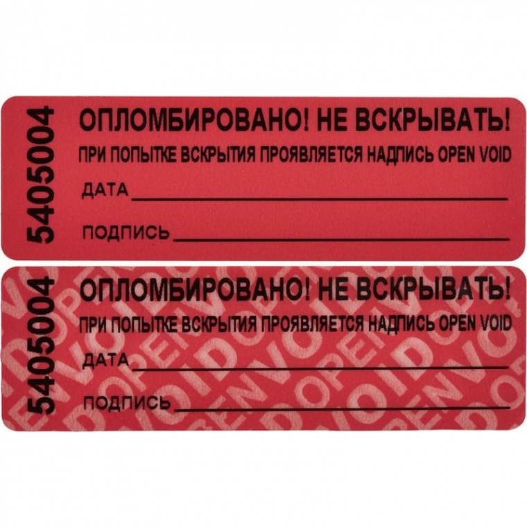 Пломба наклейка 66x22 мм красная (1000 штук в упаковке)