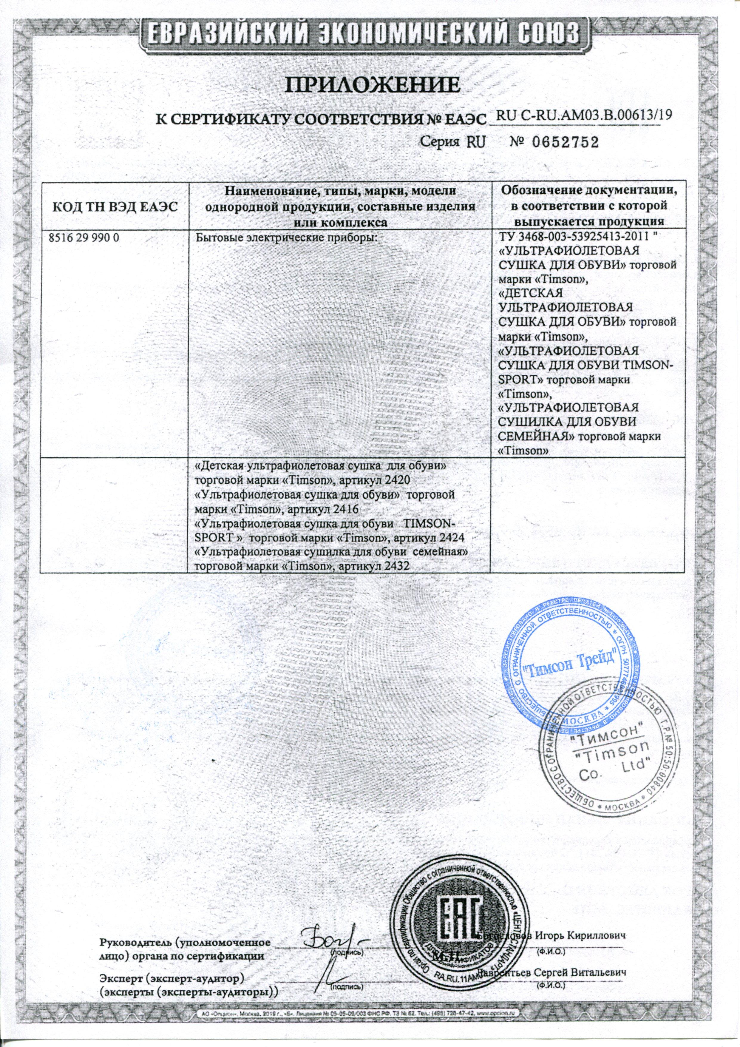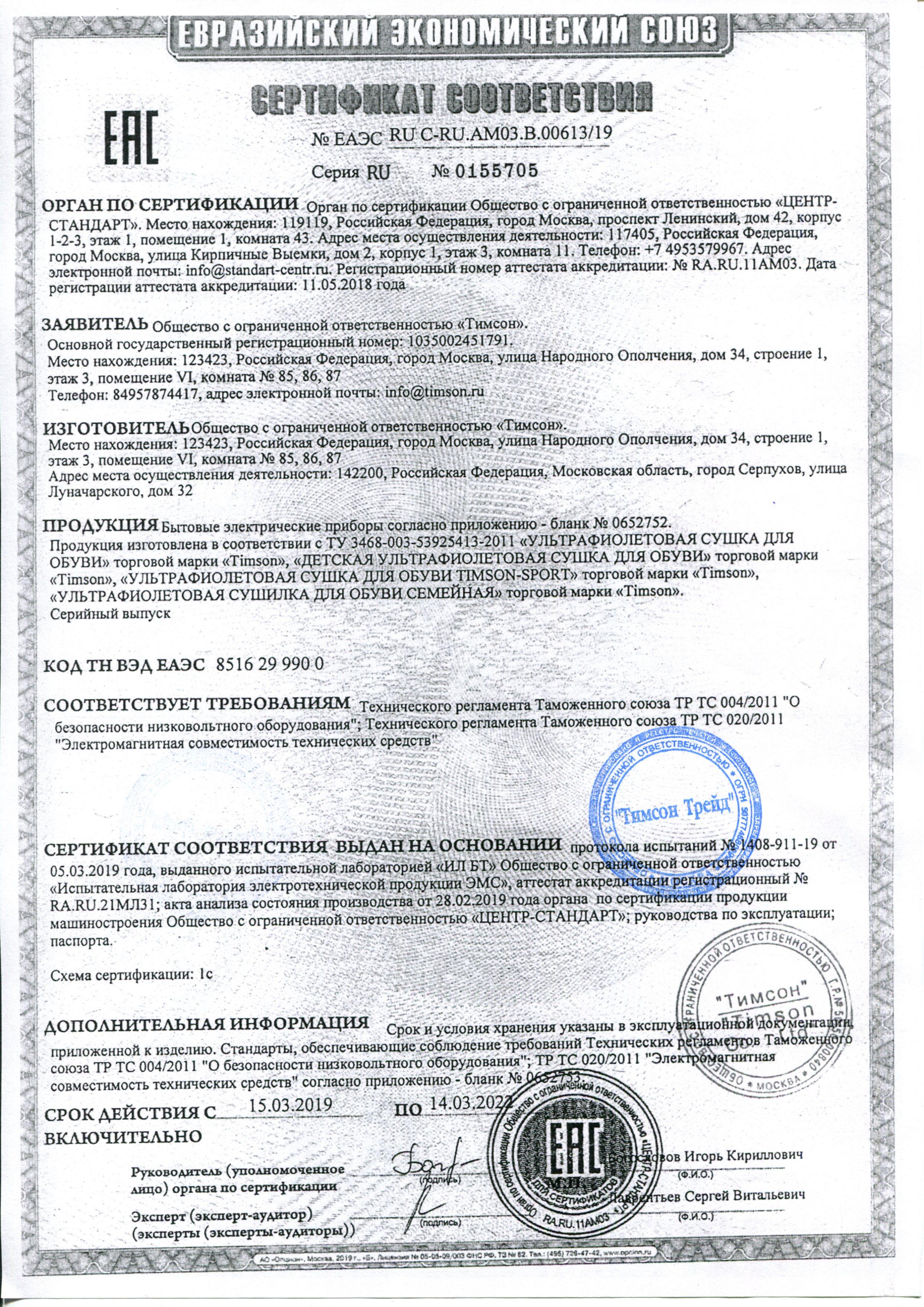 Сушилка для обуви Timson — классика ультрафиолетовых сушилок в модельном ряду Тимсон. Она обеспечивает обуви щадящий режим просушивания и санитарной обработки, защиту от развития вредных бактерий и грибковых спор. Благодаря оптимально подобранной температуре обработки сушку Тимсон можно оставлять включенной на всю ночь, она не повредит структуре обуви и бережно ее высушит.