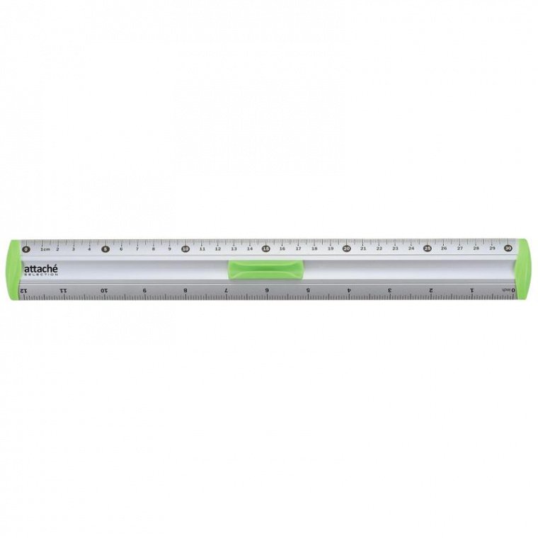 30-сантиметровая линейка Attache Selection выполнена из прочного анодированного алюминия с держателем. Градуировка с обеих сторон. Бесшумная, пластиковая защита краев. С пластиковым держателем для карандаша.