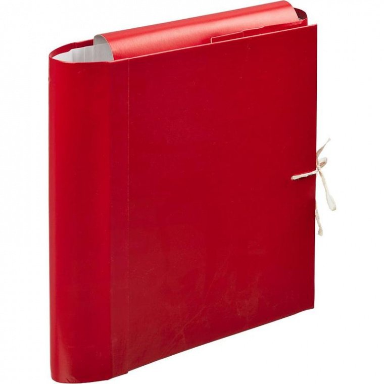 Архивная папка Attache формата А4 выполнена из плотного картона, покрытого бумвинилом (материал на основе ПВХ) красного цвета. Вместимость 1200 листов стандартной бумаги А4 формата. Ширина корешка — 120 мм. В закрытом виде фиксируется с помощью четырех завязок. Внешний размер- 228×120×310 мм. Внутренний размер — 224×118×310 мм.