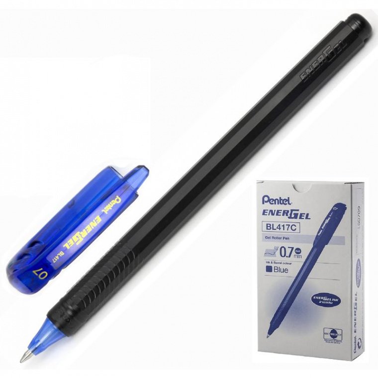 Ручка гелевая Pentel EnerGel BL417-C. Простая, экономичная, но в то же время очень стильная и лаконичная гелевая ручка внесет глоток позитивной энергии в каждый офис. Ее новаторство усиливает беспрецедентный 12 гранный матовый корпус, который значительно повышает комфорт использования. Цвет корпуса черный с рифленой зоной захвата. Наконечник и колпачок ручки Pentel EnerGel BL417 выполнены из тонированного пластика и соответствуют цвету чернил. Подходит для левшей. Толщина линии 0,35 мм, диаметр шарика 0,7 мм, длина стержня — 111 мм.