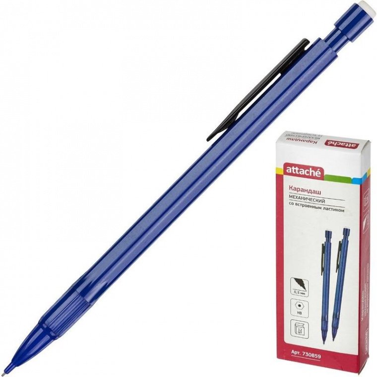 Карандаш механический Attache Economy с толщиной линии письма 0,5 мм. Выполнен в непрозрачном пластиковом корпусе с клипом. Цвет корпуса синего цвета. Карандаш механический оснащен ластиком. Длина карандаша — 150 мм, диаметр корпуса — 8 мм.Сменный стержень для механического карандаша вы сможете найти во вкладке ’Расходные материалы’.