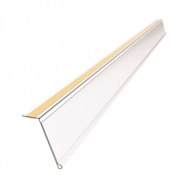 Ценникодержатель пластиковый самоклеящийся HEL. Крепится на верхней части стеллажа. Перед наклеиванием ценникодержателя на полку, полку необходимо обезжирить и протереть от грязи и пыли. Угол наклона к торцу полки — 15°. Высота изделия — 40 мм. Высота вставки в ценникодержатель — 39 мм. Длина — 1000 мм.Количество в упаковке: 50 штук.