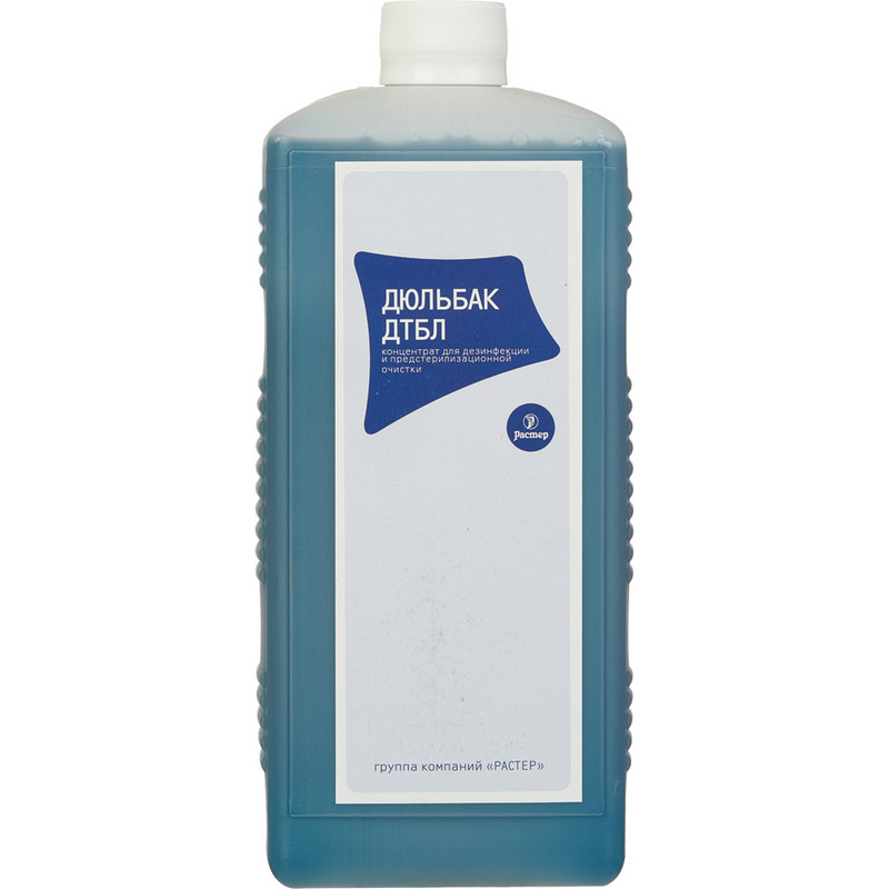 Дезинфицирующее средство 'Дюльбак ДТБЛ' 1 л (концентрат). Химический состав дезсредства: ЧАС, поверхностно-активные вещества (ПАВ), вспомогательные компоненты. Действующие вещества: дидецилдиметиламмоний хлорид 4.5 %, вспомогательные компоненты , ПАВы. Сфера применения: акушерские стационары, лпу, клинические лаборатории, станции переливания крови, бактериологические лаборатории, детские учреждения (детсады, школы и т.п.), пенитенциарные учреждения, инфекционные очаги, предприятия общественного питания, предприятия продовольственной торговли, потребительские рынки, коммунальные объекты (бани, бассейны, гостиницы, общественные туалеты и т.п.), учреждения соцобеспечения, парикмахерские, косметические и (или) массажные салоны, прачечные, санитарный транспорт, отделения неонатологии, в быту населением, отделения физиотерапевтического профиля, учреждения культуры, отдыха (кинотеатры, музеи, театры), спортивные и культурно-оздоровительные комплексы, объекты курортологии, вирусологические лаборатории, морги и ритуальные учреждения. Объекты обработки: анестезиологическое оборудование, аппараты искуственной вентиляции легких, баки накопительные автономных туалетов, барокамеры, белье нательное, белье постельное, воздух в помещениях, выделения больного (моча, фекалии, мокрота), гибкие эндоскопы, жесткая мебель, жесткие эндоскопы, игрушки, ИМН из металлов, резин на основе натурального и силиконового каучука, стекла, пластмасс, ИМН обычные, ИМН одноразовые перед утилизацией, инструменты к эндоскопам, инструменты стоматологические, инструменты хирургические, камеры для хранения стерильных ИМН, кровь, кувезы, лабораторная посуда, мед. отходы из текстильных материалов (ватные и марлевые тампоны, марля, бинты), мокрота, моча, мусоросборочное оборудование, мусоропроводы, мягкая мебель, напольные покрытия, обивочные ткани, обувь, обувь из пластика, резины, одноразовая посуда, органические операционные отходы, плевательницы, поверхности в помещениях, поверхности приборов и аппаратов, предметные стекла для микроскопии, предметы для мытья посуды, предметы личной гигиены, предметы обстановки, предметы ухода за больными, приспособления к кювезам, рвотные массы, резиновые и полипропиленовые коврики, санитарно-техническое оборудование, системы вентиляции и кондиционирования воздуха, скорлупа пищевых яиц, слюноотсосы, смывные воды, спортивный инвентарь, столовая посуда, стоматологические материалы (оттиски из альгината, силикона, полиэфирной смолы, зубопротезные заготовки, артикуляторы), стоматологические отсасывающие системы, транспорт для перевозки пищевых продуктов , уборочный инвентарь, фекалии, фекально-мочевая взвесь, эндоскопические смывные воды. Класс опасности: при введении в желудок - 4; при нанесении на кожу - 4; рабочего раствора - 4. Активно в отношении: - бактерии (Mycobacterium terrae, Mycobacterium tuberculosi, анаэробныe инфекции, возбудители ВБИ, грамотрицательные бактерии, грамположительные бактерии); - вирусы (аденовирусы, атипичной пневмонии, ВИЧ, герпеса, грипп, коксаки, ECHO, парагрипп, парентеральных гепатитов, полиомиелит, прочие возбудители ОРВИ, птичьего гриппа (H5N1), ротавирусы, свиной грипп (H1N1), энтеральных гепатитов, энтеровирусы); - Возбудители особо опасных инфекций (легионеллез, сибирская язва, туляремия, холера, чума); - Возбудители п