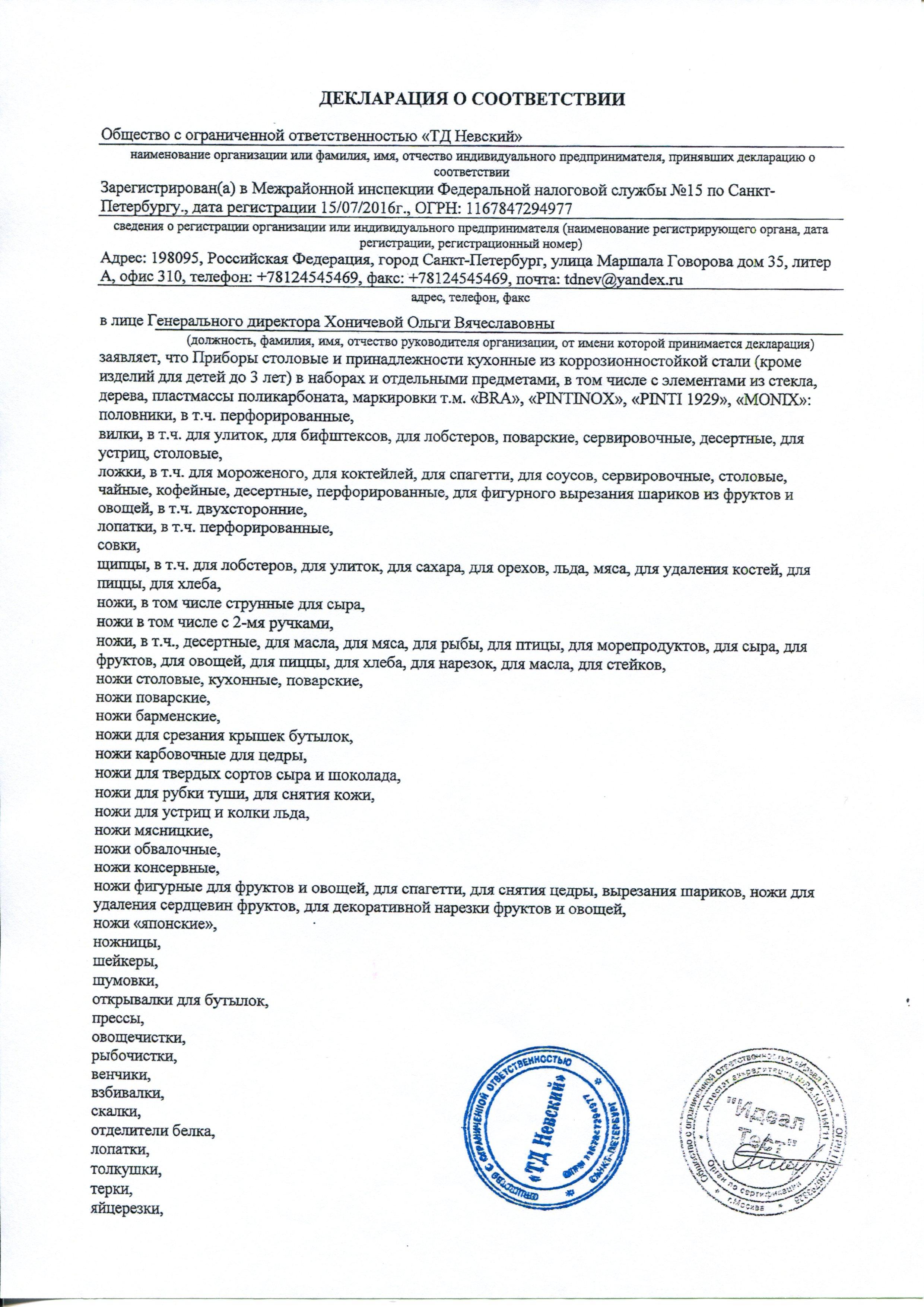Сертификат на товар - Вилка столовая Pintinox Бостон 19.5 см 12 штук в упаковке (артикул производителя 1260M002)