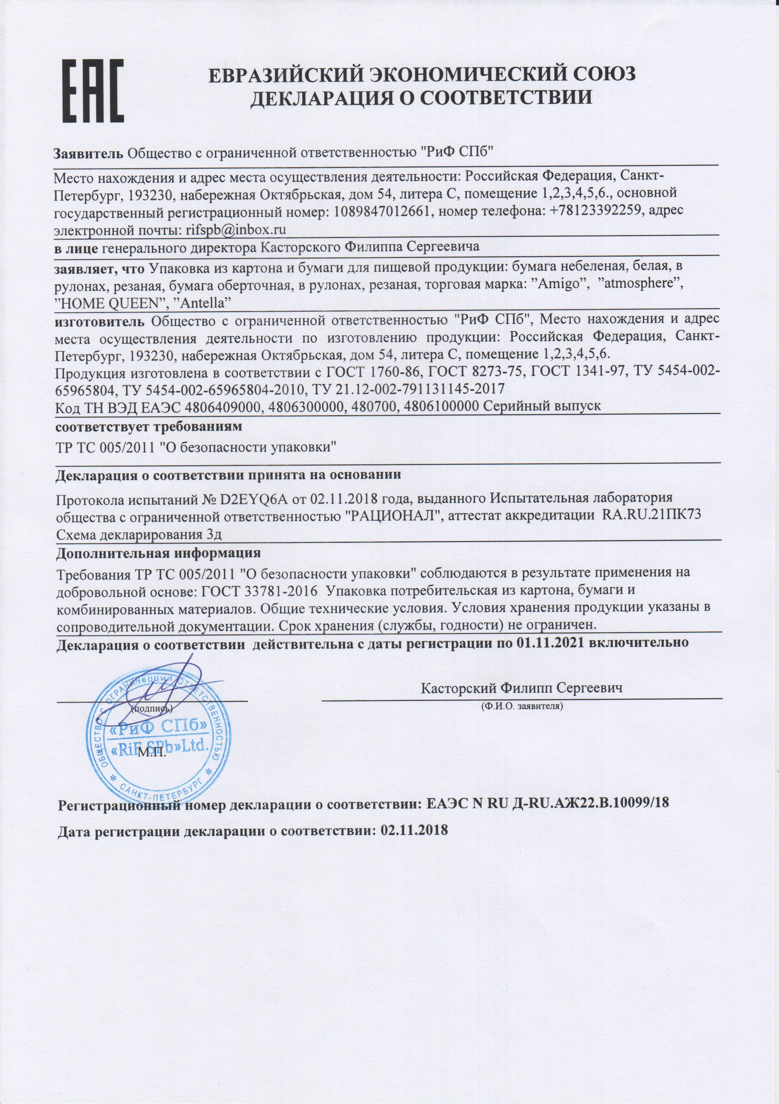 Сертификат на товар - Бумага для выпечки в листах 40x60 см коричневая 7 кг