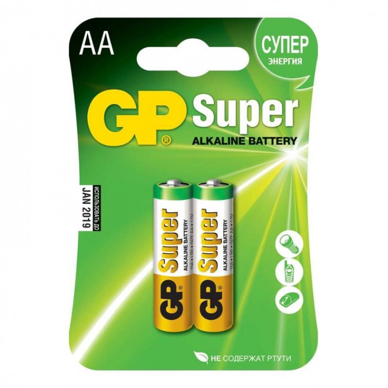 — Super Alkaline GP 15A-U2 — алкалиновые элементы питания самого популярного ’пальчикового’ формата. Отличительная особенность этой серии батареек GP — увеличенная продолжительность работы.