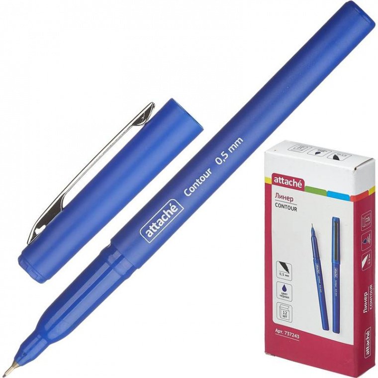 Ручка-линер Attache Contour обеспечивает тонкое, четкое и яркое письмо, не просачиваясь сквозь бумагу. Толщина линии — 0,5 мм. Линер подходит для черчения и графических работ. Возможности смены стержня нет. В упаковке 12 штук.