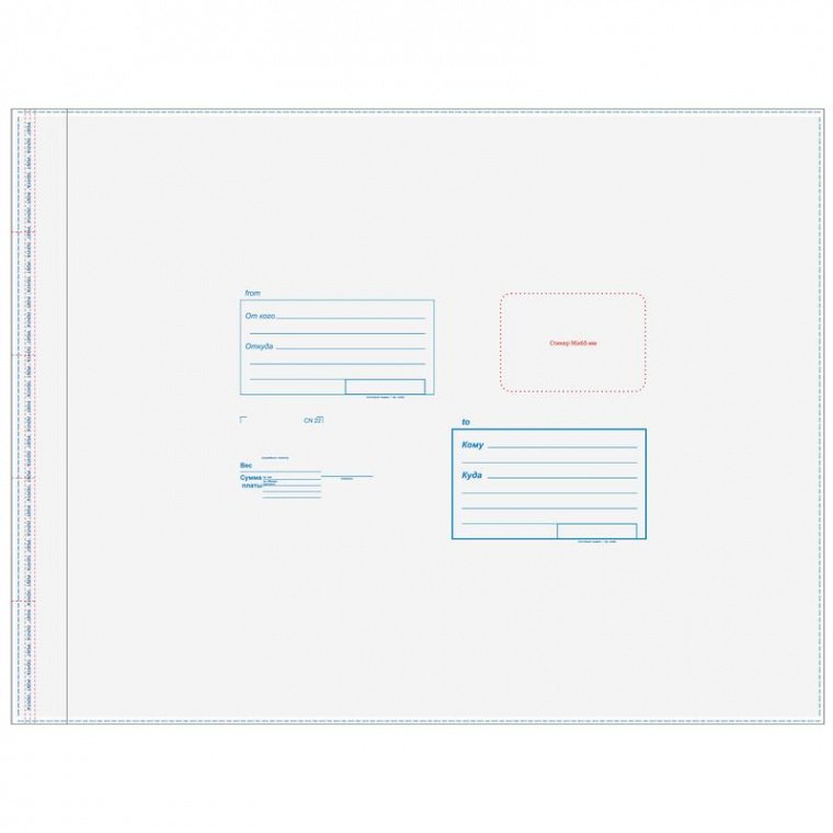 Пакет почтовый полиэтиленовый. Размер — 485×615 мм. Материал — полиэтилен. Тип заклеивания — стрип. Форма клапана — прямая. Печать ’Куда-Кому’. Количество штук в упаковке — 250. Для предотвращения смазывания надписей рекомендуется не использовать письменные инструменты в состав чернил которых входит масло или гель.