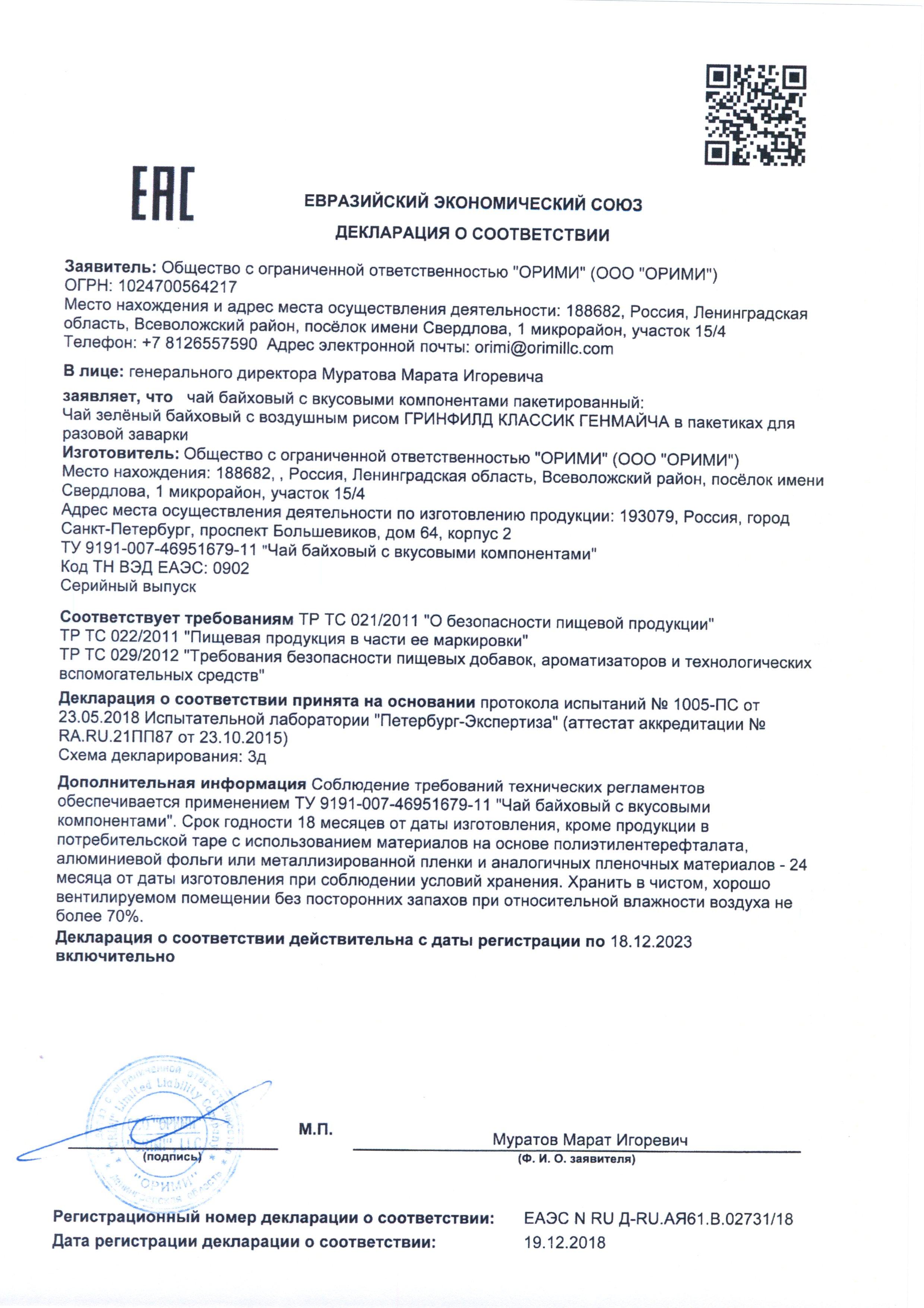 Для приготовления зеленого чая Greenfield Classic Genmaicha положите в чашку или заварочный чайник по одному пакетику на человека и залейте кипяченой водой. Дайте настояться 5-7 минут и чай будет готов.