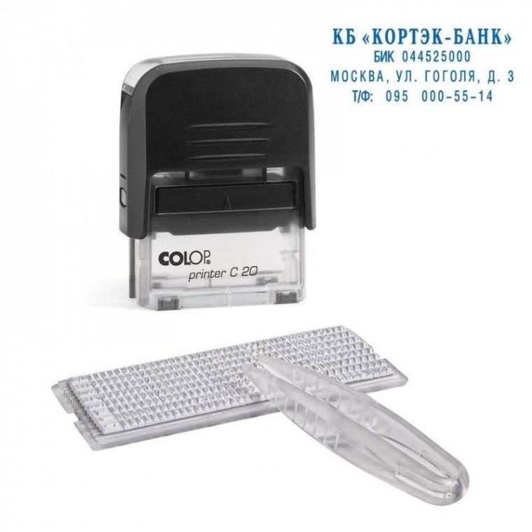 Штамп самонаборный Colop Printer C20-Set используется для самостоятельного создания и оперативного изменения текста оттиска. Компактный и надежный пластиковый корпус с автоматическим окрашиванием. Прозрачное основание и метка, указывающая на середину, позволяют точно размещать оттиски на документах. Штемпельная подушка легко заменяется. Оптимальный набор букв, цифр и символов с креплением на одной ножке, экспресс-набор текста. Размер поля — 38×14 мм, 4 строки. Максимальное количество знаков в каждой строке — 25 основным шрифтом или 17 большим шрифтом. Комплектация: штамп с рифленой пластиной для набора, одна касса букв Type Set A, синяя сменная штемпельная подушка E/20, пинцет.