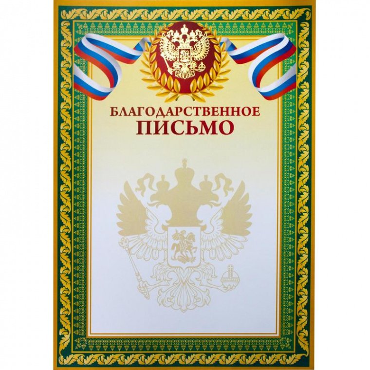 Благодарственное письмо (формат А4) отпечатано на мелованном картоне плотностью 230 г/кв.м. Бланк подойдет для печати текста на стандартном принтере. В упаковке 10 штук. Страна происхождения: Россия.