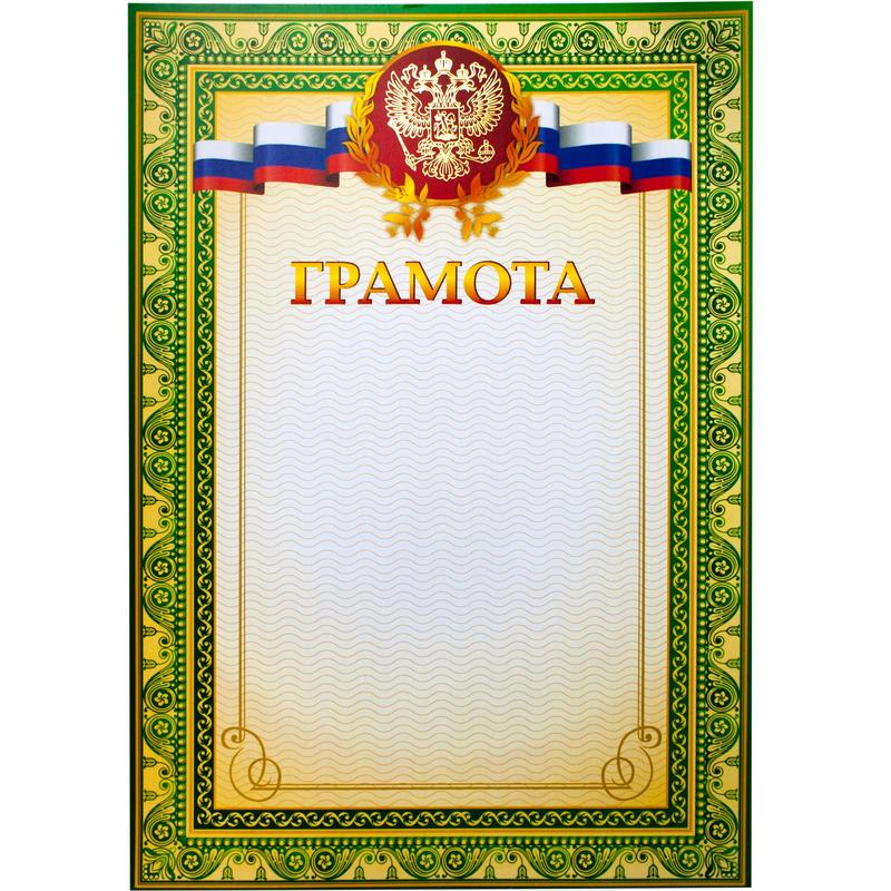 Сертификат на товар - Грамота A4 230 г/кв.м 10 штук в упаковке (зеленая рамка, герб, триколор)