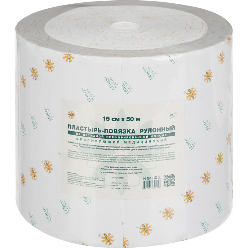 Применение: для сплошной фиксации всех видов послеоперационных и раневых повязок (в том числе на больших поверхностях), сложных повязок на суставах, подвижных и округлых частях тела. Для закрепления катетеров, трубок и других медицинских устройств. Наклеивать на сухую кожу. Подходит для длительного ношения. Пластырь-повязка не нарушает кровообращения, не ограничивает свободы движения, плотно прилегает и повторяет форму подвижных частей тела со сложным рельефом (колено, подмышечная область, плечо и др.), не отклеивается и не смещается при движении. Перфорированная структура основы характеризуется высокой воздухо- и паропроницаемостью, обеспечивает эффективный влагообмен, позволяя коже 'дышать', не вызывая мацерации. Снимается легко, безболезненно, не травмируя кожный покров и не оставляя следов адгезивного слоя на коже.