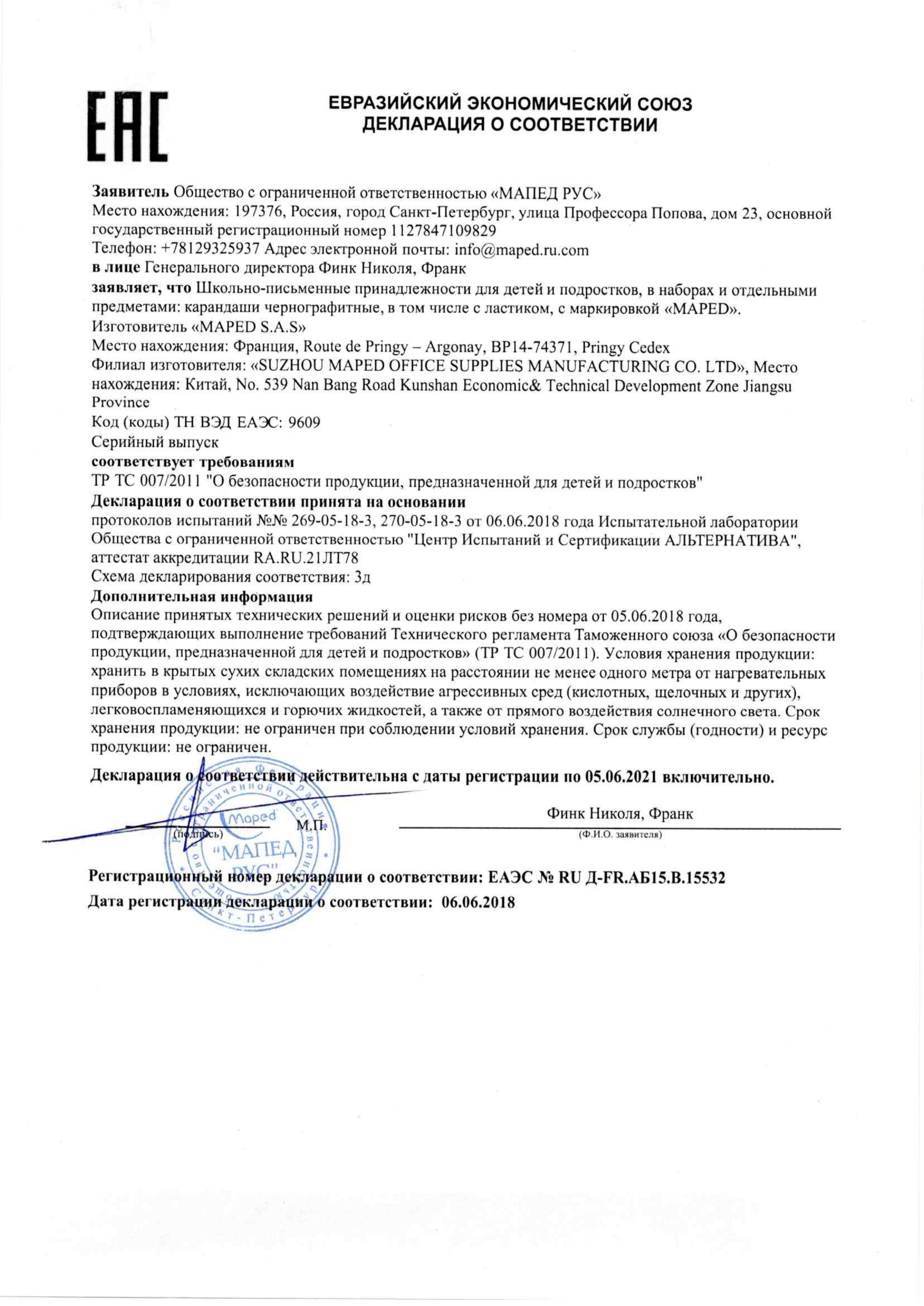 Сертификат на товар - Карандаш чернографитный Maped HB заточенный с ластиком