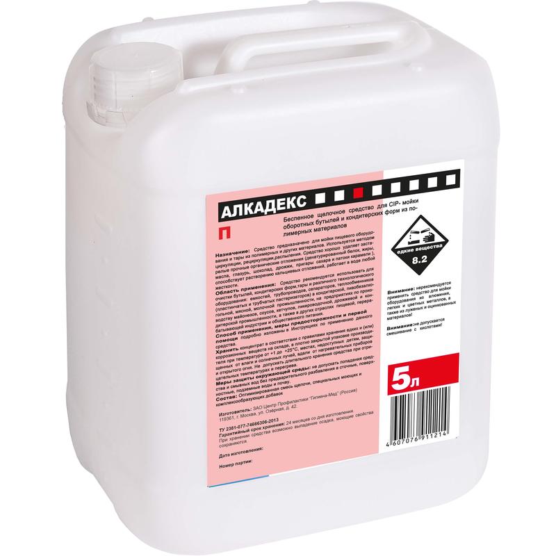 Средство для CIP-мойки оборотных бутылей и кондитерских форм из полимерных материалов Алкадекс П 5 л (концентрат)