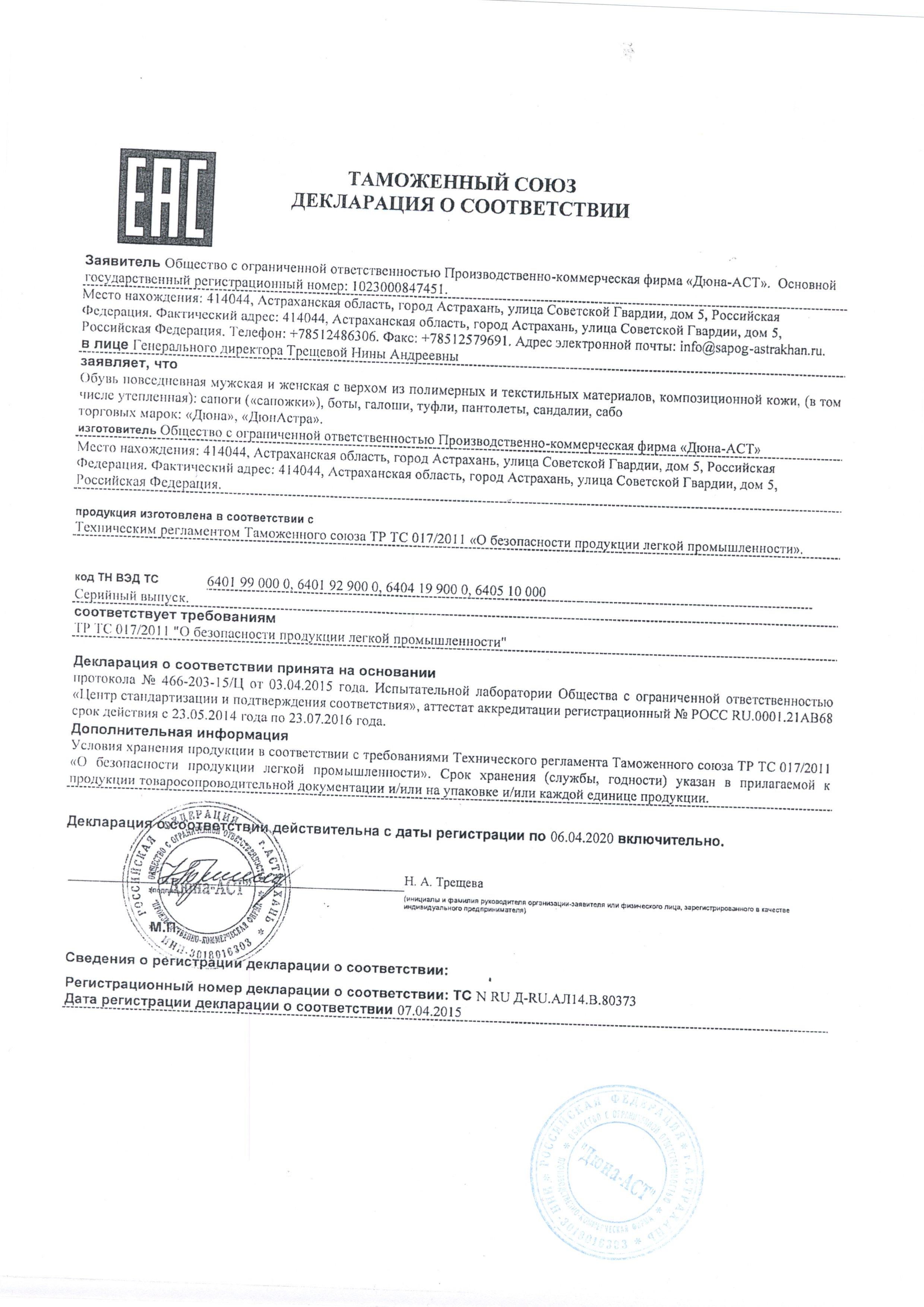 Сертификат на товар - Галоши ЭВА черные (размер 40)