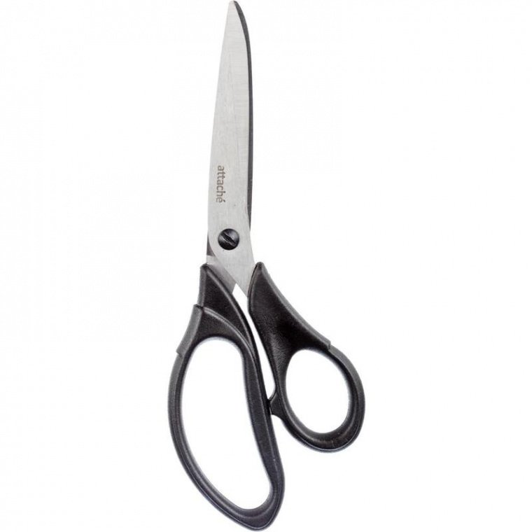 Ножницы офисные Attache Profi, 220 мм, пластиковые, эргономичные ручки, предназначены для разрезания различных материалов, включая бумагу, картон, нитки, ткани, войлок, шнур, медные и алюминиевые провода диаметром до 0,3 мм. Ручки выполнены из черного пластика и имеют эллиптическую форму. Длина ножниц 220 мм (9 дюймов). Затяжка винта регулируется. Гарантия 2 года. Ножницы изготавливаются из высокоуглеродистой легированной стали. Это идеальный материал для режущих изделий. При закаливании этой стали достигается твёрдость 54 (±2) HRC. Ножницы прослужат долго. Трехсторонняя заточка лезвий. Лезвия ножниц имеют угол (остроту) заточки, обеспечивающий великолепное качество резки. Соединительный узел имеет металлический винт и ответную эллипсную втулку, что позволяет осуществлять регулировку, при резке различных материалов (задавать нужную нагрузку на лезвия), а винт при этом самопроизвольно не раскручивается. Предприятие использует уникальные станки немецкой фирмы Paul — мирового лидера по выпуску оборудования для производства ножниц. Поэтому неслучайно прослеживается сходство с ножницами Konig, производимых на этом же оборудовании.