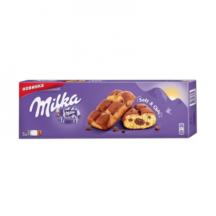 Узнаваемая лиловая коробочка содержит 5 пирожных, которыми сможет угоститься вся семья, собравшаяся за столом. Также их можно использовать в качестве гостинца или взять с собой в офис, обеспечив себя сладким лакомством для чаепития на всю рабочую неделю. Попробуйте и вы прекрасное пирожное с чашкой несладкого чая, кофе или теплого какао и наслаждайтесь изумительной гармонией пышной бисквитной выпечки с роскошным молочным шоколадом Milka.