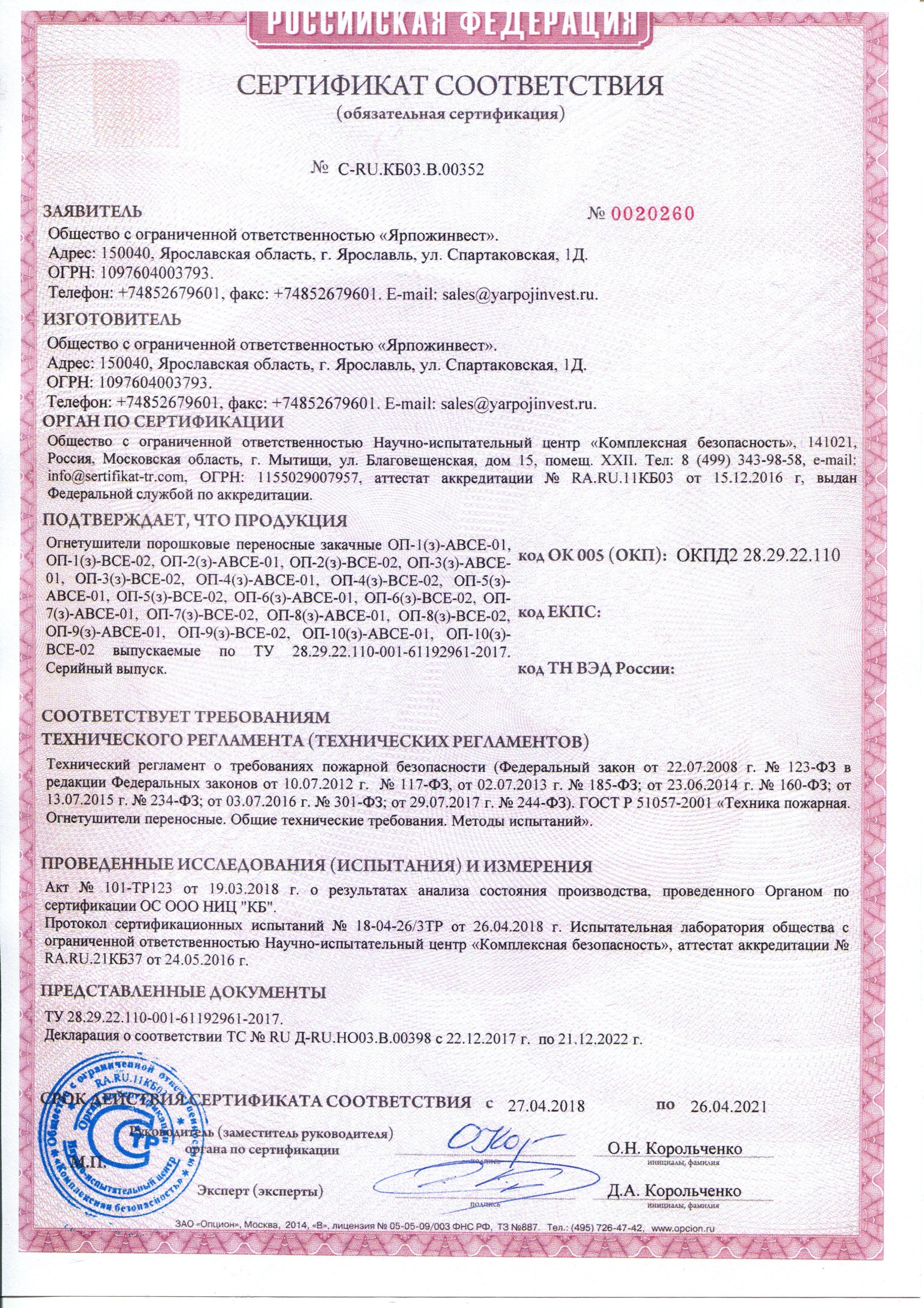 Комплектация: огнетушитель — 1 шт, паспорт, совмещенный с инструкцией по эксплуатацией — 1 шт.