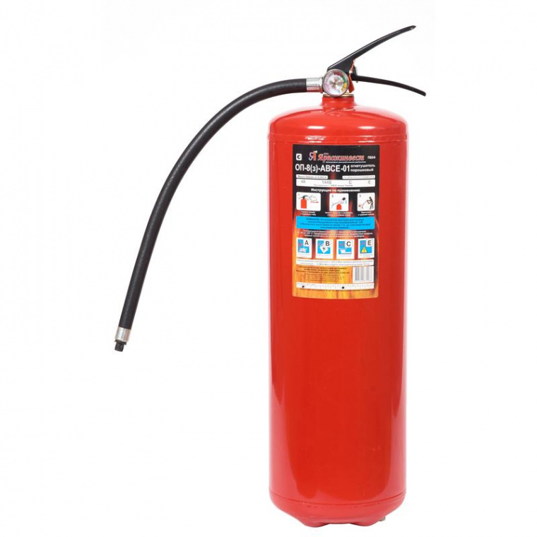 Огнетушитель порошковый ОП-8 (з) АВСЕ предназначен для защиты помещений производственного и хозяйственного назначения, применения на автомобильном, железнодорожном, речном транспорте, морских судах и в бытовых условиях в качестве первичных средств тушения пожаров классов А (твердых горючих веществ), В (жидких горючих веществ), С (газообразных горючих веществ)и электроустановок, находящихся под напряжением до 1000 В. Огнетушитель не предназначен для тушения загораний щелочных и щелочноземельных металлов и материалов, горение которых может происходить без доступа воздуха. Комплектация огнетушитель заряженный с опломбированным ЗПУ с распылителем, руководство по эксплуатации, объединенное с паспортом.