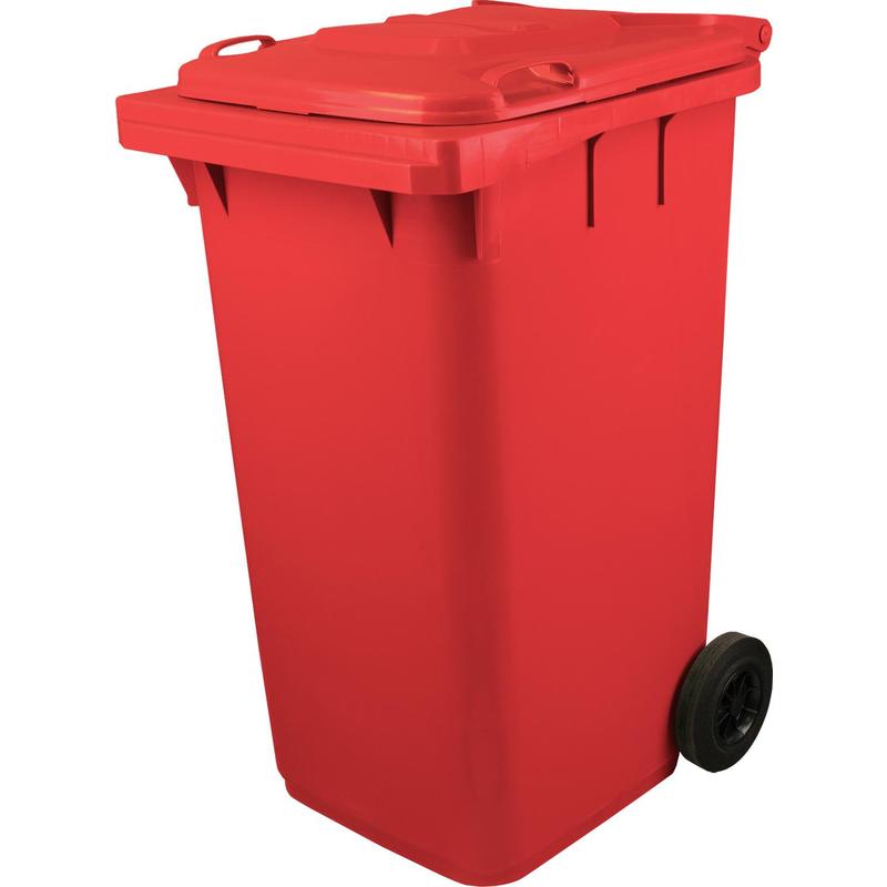 Контейнер-бак мусорный 240 л пластиковый на 2-х колесах с крышкой красный