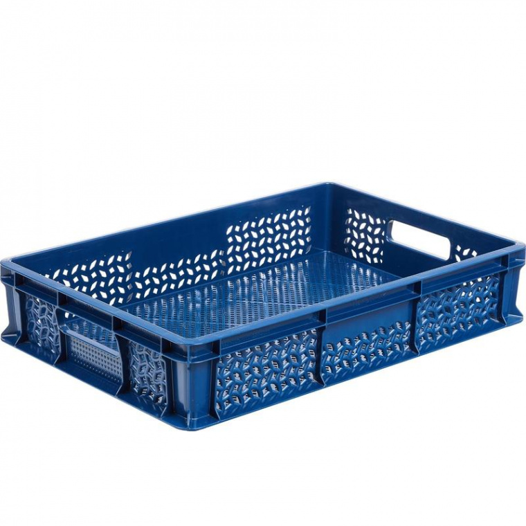 Ящик (лоток) универсальный штаблируемый, изготовлен из полиэтилена низкого давления. Внешний размер: 600×400×120 мм, внутренний размер: 572×372×108 мм. Объем: 22 л. Вес: 1,25 кг. Ящик с перфорированными боковыми стенками и дном. Предназначен для эффективного хранения, обработки и транспортировки продукции различного назначения.