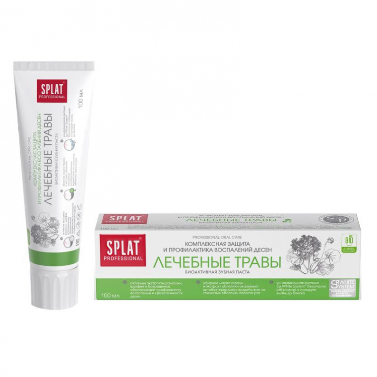Гелевая зубная паста Splat Professional (100 мл) содержит экстракты трав и растений, а также масло герани для эффективного ухода за зубами и деснами. Эфирное масло герани — прекрасный антисептик, обладает антиоксидантным и антибактериальным свойствами, оказывает мягкое воздействие на эмоциональное состояние, создает светлое настроение. Сочетание экстрактов ромашки, шалфея и боярышника обеспечивает комплексное антибактериальное, противовоспалительное, укрепляющее и тонизирующее действие на десны. Кальцис, полученный из яичной скорлупы, ускоряет процессы минерализации и укрепляет эмаль. Экстракт облепихи благодаря высокому содержанию витаминов А, С и Е оказывает выраженное антиоксидантное действие. Фторид-ионы защищают от кариеса, укрепляя эмаль и делая ее устойчивой к воздействию органических кислот.