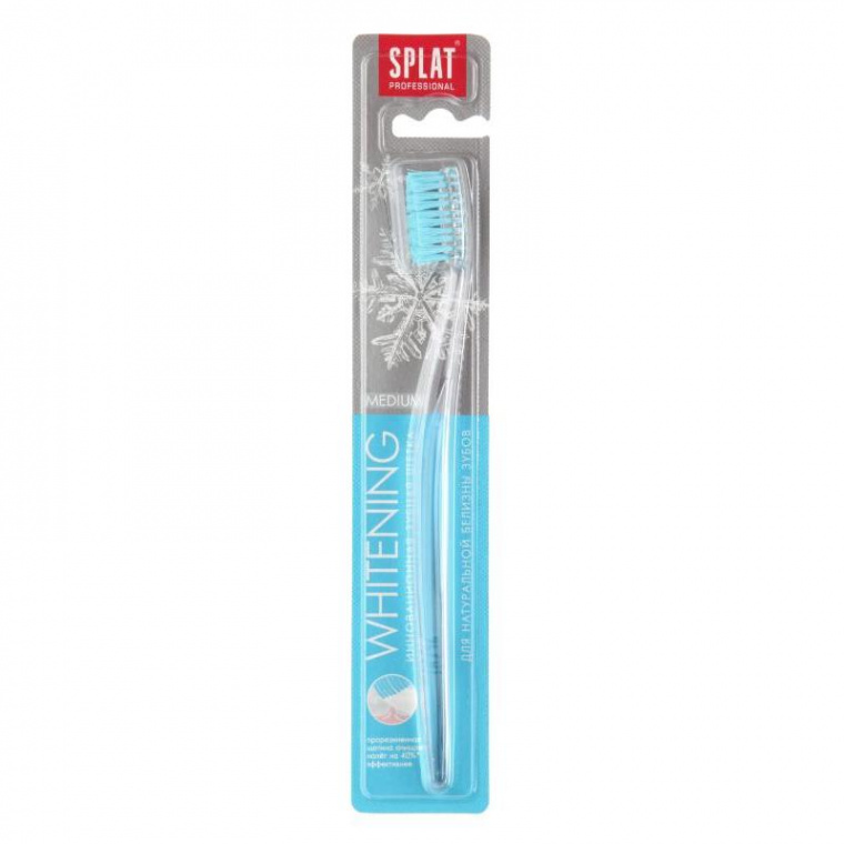 Прорезиненная щетина зубных щеток Whitrning на 40% эффективнее отбеливает зубы, чем обычная нейлоновая, что подтверждено клиническими исследованиями. Специальное покрытие каждой щетинки позволяет аккуратно и эффективно очищать налет, как будто ластик стирает карандаш с белого листа бумаги. Закругленные кончики щетинок гарантируют, что процесс чистки будет безопасным. Зубные щетки Splat Whitrning созданы для достижения