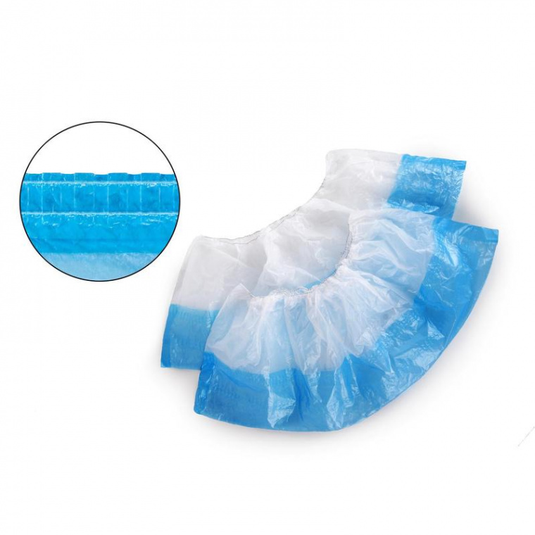 Бахилы одноразовые полиэтиленовые двухслойные текстурированные 3 г бело-голубые (50 пар в упаковке)