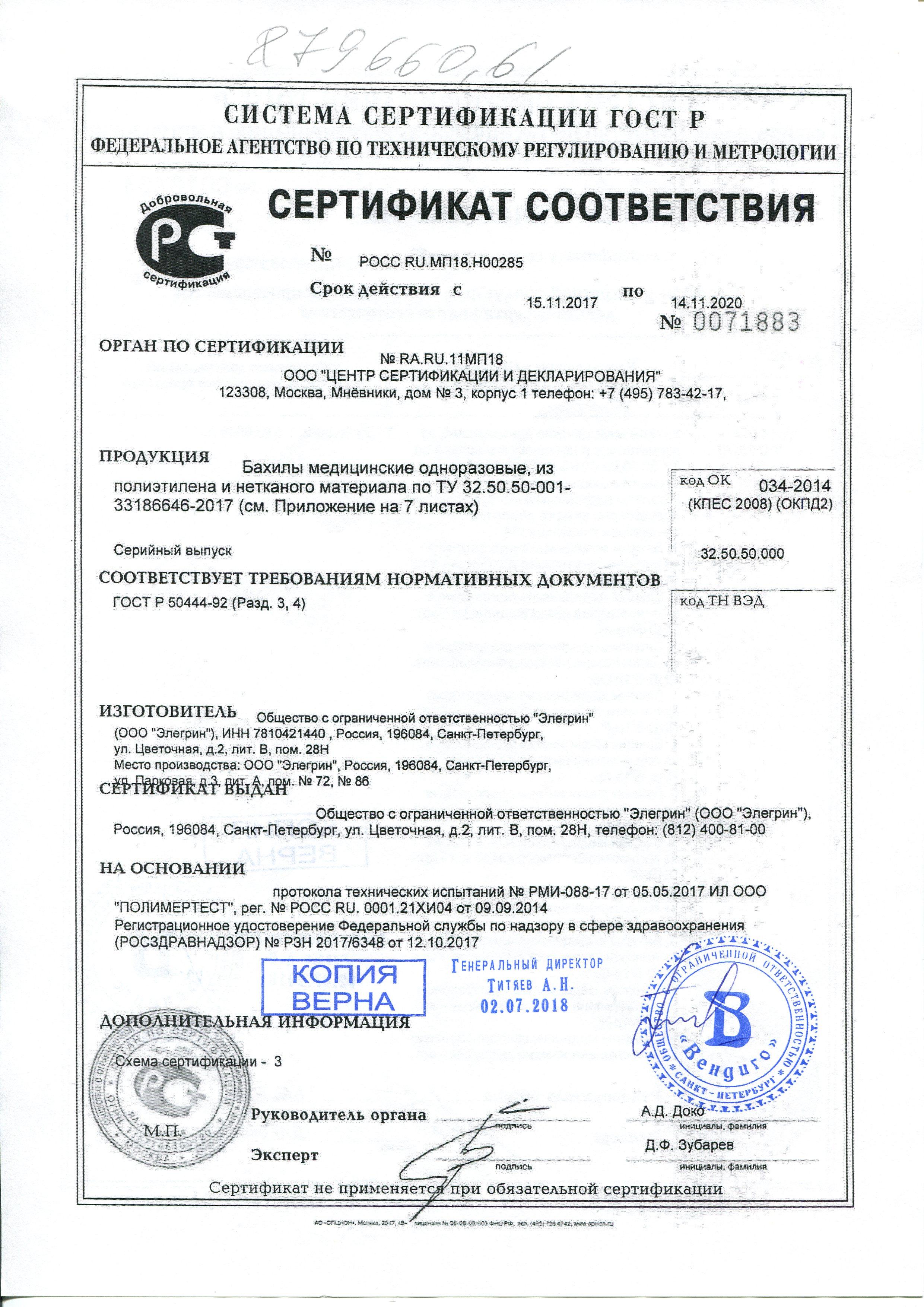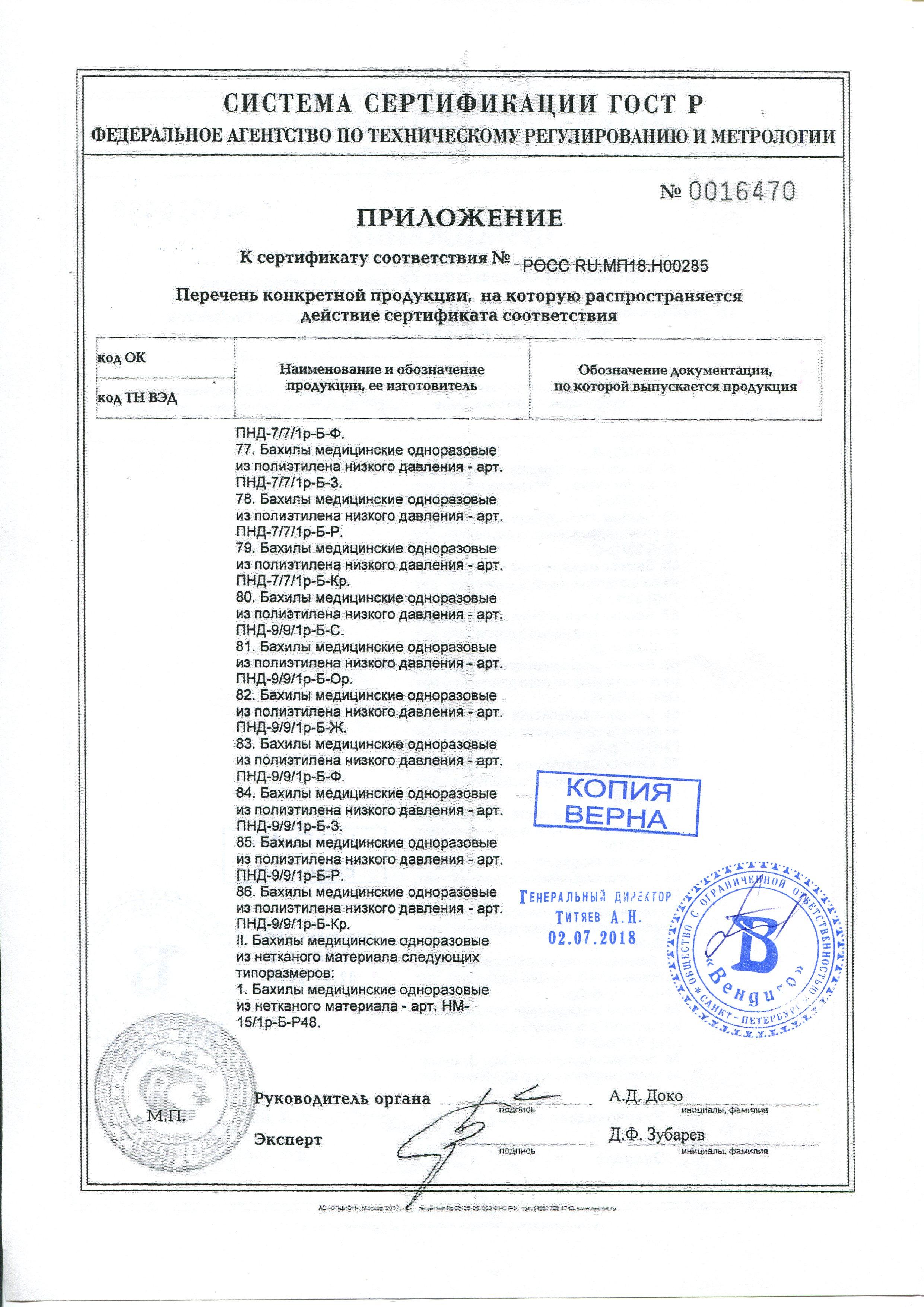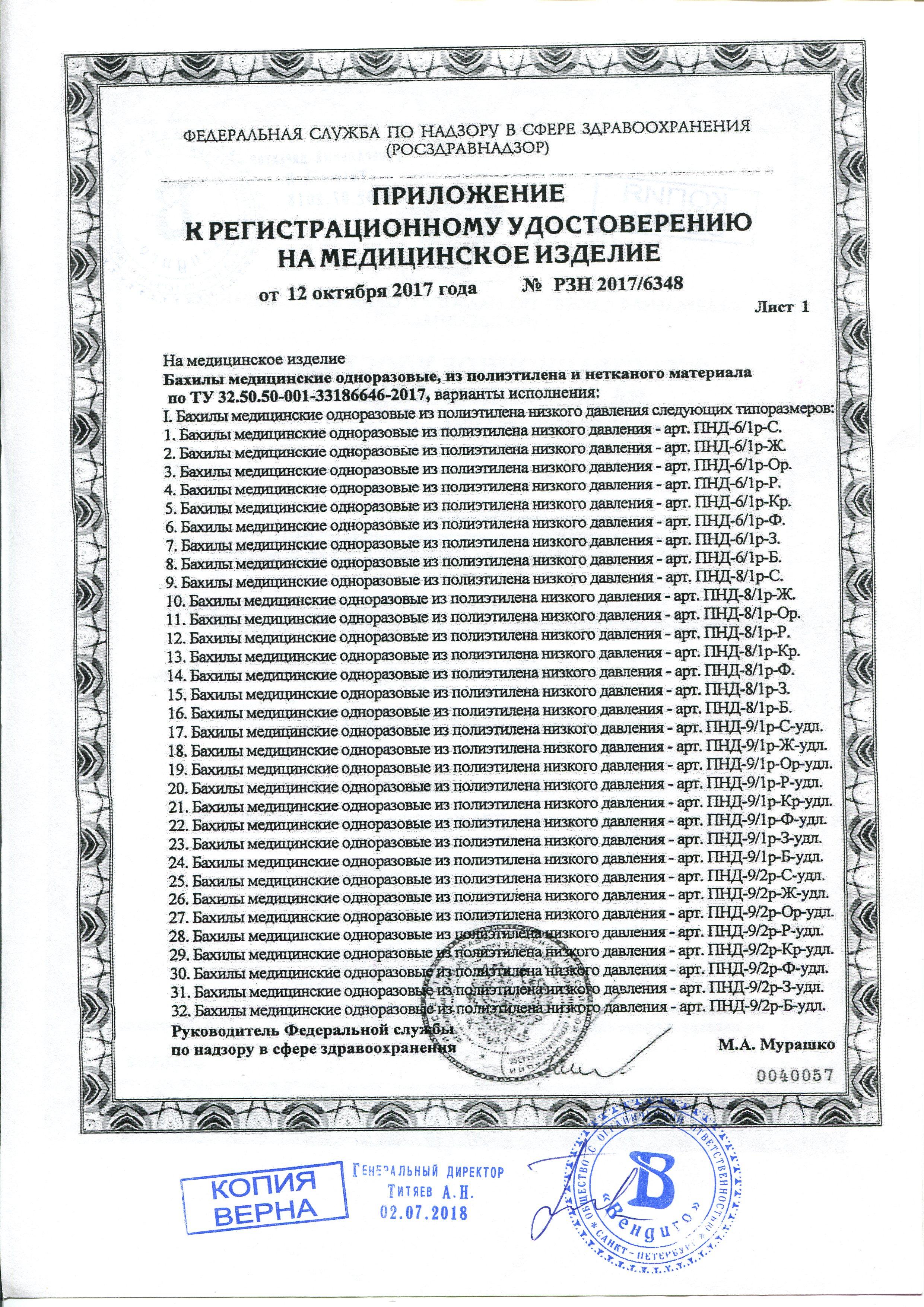 Сертификат на товар - Бахилы одноразовые полиэтиленовые двухслойные текстурированные 3 г бело-голубые (50 пар в упаковке)
