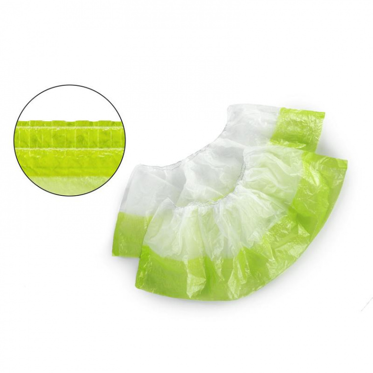 Бахилы двухслойные текстурированные - это изделия с двойной подошвой и усиленными торцевыми швами, а также надежно закрепленной резинкой по всей длине бахилы. Изделия стандартной прочности, но у них есть второй слой подошвы, изготовленный также из ПМД (полиэтилен, усиленный модифицированными добавками для устойчивости к истиранию и разрыву, придающий эффект антискольжения). За счет второго слоя, а также, усиленных торцевых швов, повышается износостойкость бахил. Вес: 3,5 гр. Плотность: 40 микрон Упаковка: 50 пар (100 шт.) Транспортная упаковка: 2500 пар 10 кг, 60x40x20, 0,048 м3