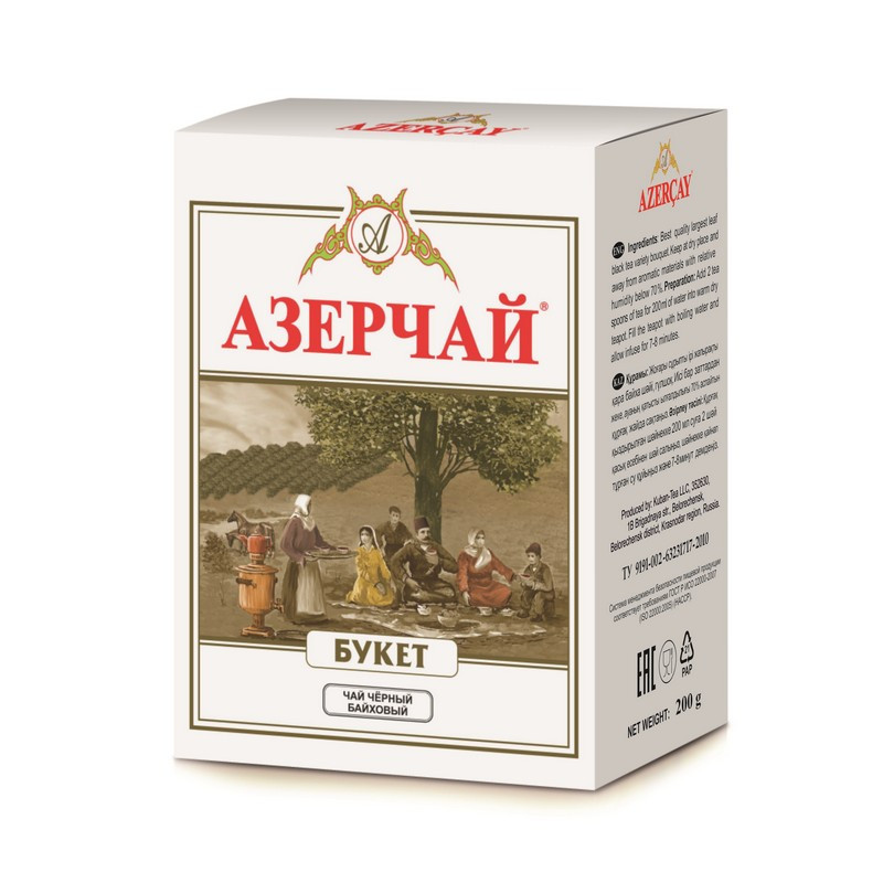 Чай черный крупнолистовой. Крупнолистовой черный байховый чай высшего сорта. Смесь чаев из регионов Азербайджана Ленкоран и Астара. Способ приготовления: заварить из расчета 1 чайная ложка на чашку. Настаивать 5-6 минуты.