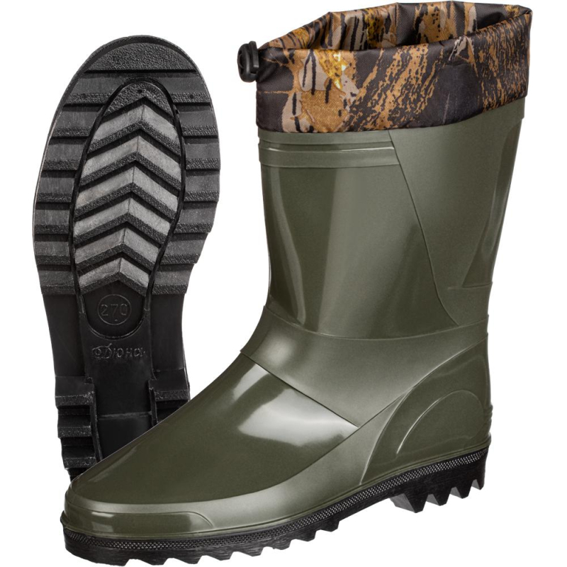 Сапоги мужские 45 размера из ПВХ выпускаются по технологии двухкомпонентного литья. Обладают высокой эластичностью при минусовой температуре. Подошва стойкая к изгибам и истиранию. Сапоги имеют надставку, выполненную из ткани Оксфорд 210, с водоотталкивающей пропиткой (ПУ). Резинка с фиксатором позволяет регулировать объем вокруг ноги и избежать проникновения загрязнений внутрь сапога. Возможна комплектация данной модели чулком-утеплителем из НТП, защищающим ноги от пониженных температур. Высота с надставкой: 30 см. Цветовая гамма модели: оливковый. Имеется заключение Минпромторга, с которым можно вернуть до 20% компенсации от расходов на обязательное социальное страхование от несчастных случаев на производстве и профессиональных заболеваний.