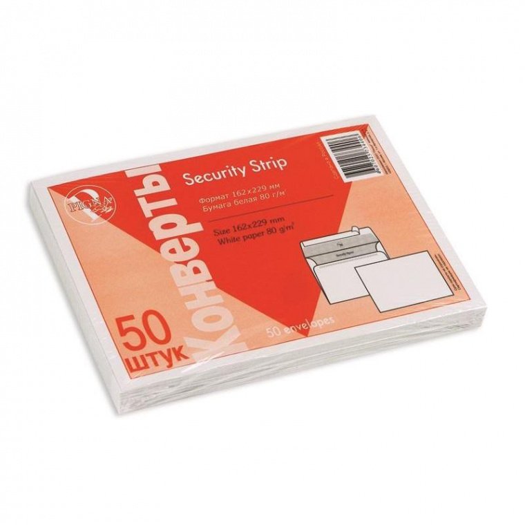 Конверт С5 (соответствует формату бумаги А5) 162×229 мм выполнен из офсета 80 г/кв.м, имеет клеевое нанесение типа стрип (отрывная силиконовая лента) и специальные насечки-индикаторы на клапане, позволяющие выявить попытку или факт несанкционированного вскрытия. Предназначены для пересылки 20 листов А4 формата сложенных вдвое, что равно 100 гр.веса. Упакован в пленку по 50 штук. Срок годности 1 год по ГОСТ. Показатель белезны бумаги — 143–149 %.