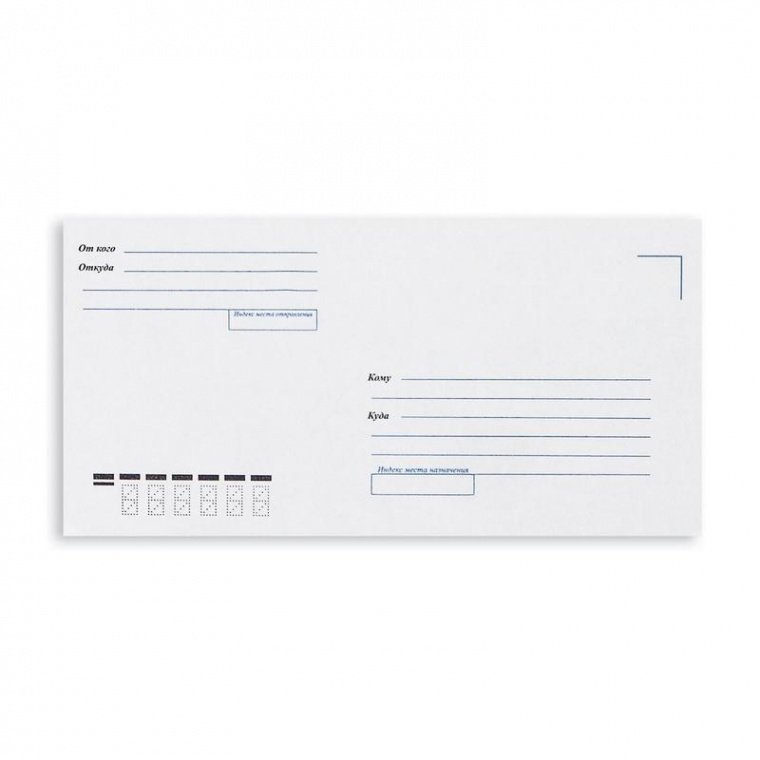 Конверт E65 110×220 мм выполнен из офсета 80 г/кв.м, имеет клеевое нанесение типа стрип (отрывная силиконовая лента) и почтовый подсказ «Куда-Кому». Предназначены для пересылки 6 листов А4 формата сложенных втрое, что равно 30 гр.веса. Упакован в короба по 1000 штук. Срок годности 1 год по ГОСТ. Показатель белезны бумаги — 143-149 %.