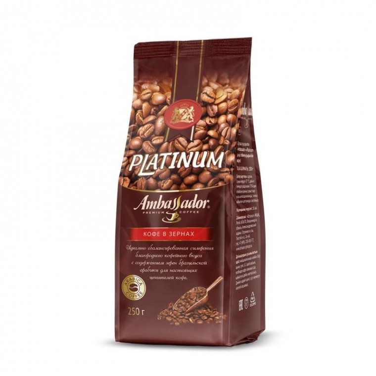 Ambassador Platinum в зернах — один из оптимальных вариантов для использования в кофейнях, больших офисных коллективах и домашнего кофепития. Он имеет прекрасные тонизирующие свойства без лишней терпкости и горечи. Чашка свежеприготовленного Ambassador Platinum позволит отвлечься от ненужных мыслей и восполнить силы.
