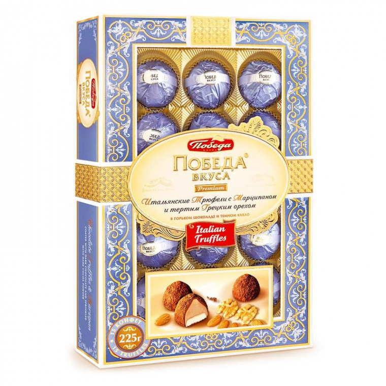Шоколадные трюфели Победа с марципаном и тертым грецким орехом 225 г