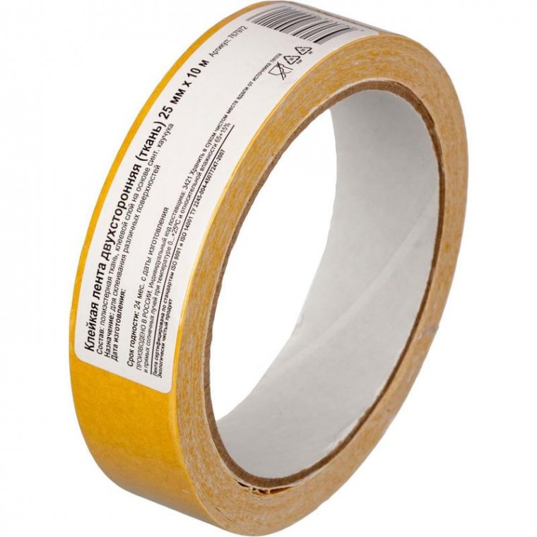 Клейкая лента двусторонняя монтажная на тканевой основе. Используется для склеивания гладких поверхностей и материалов при проведении монтажных, ремонтных, дизайнерских и оформительных работ. Клеевой слой на основе синтетического каучука.