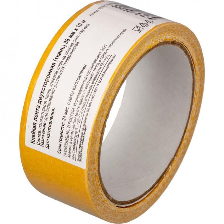 Клейкая лента монтажная на тканевой основе. Клеевой слой на основе синтетического каучука. Используется для склеивания гладких поверхностей и материалов при проведении монтажных, ремонтных, дизайнерских и оформительных работ.