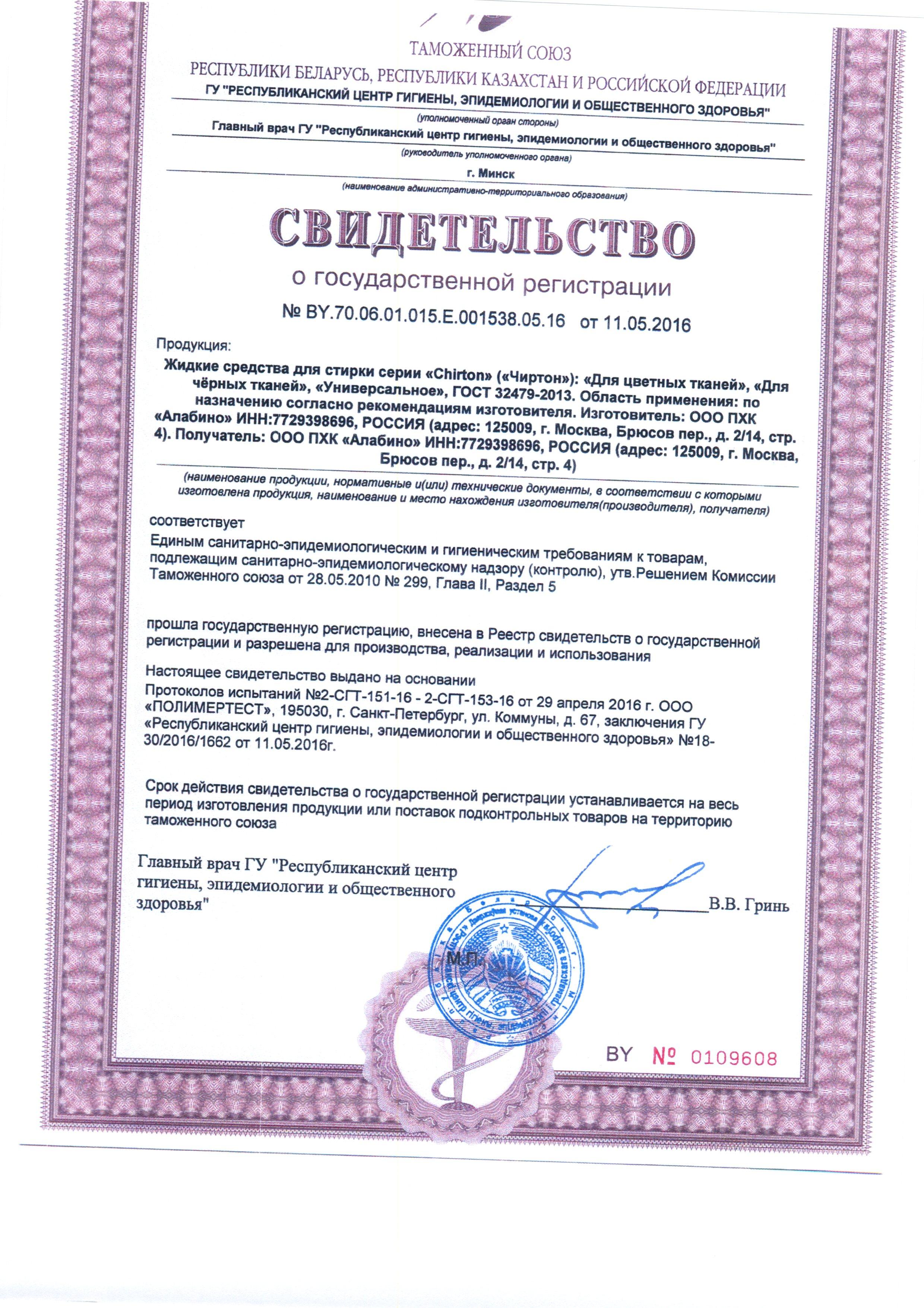 Сертификат на товар - Жидкость для стирки Chirton Универсальное 1.325 л
