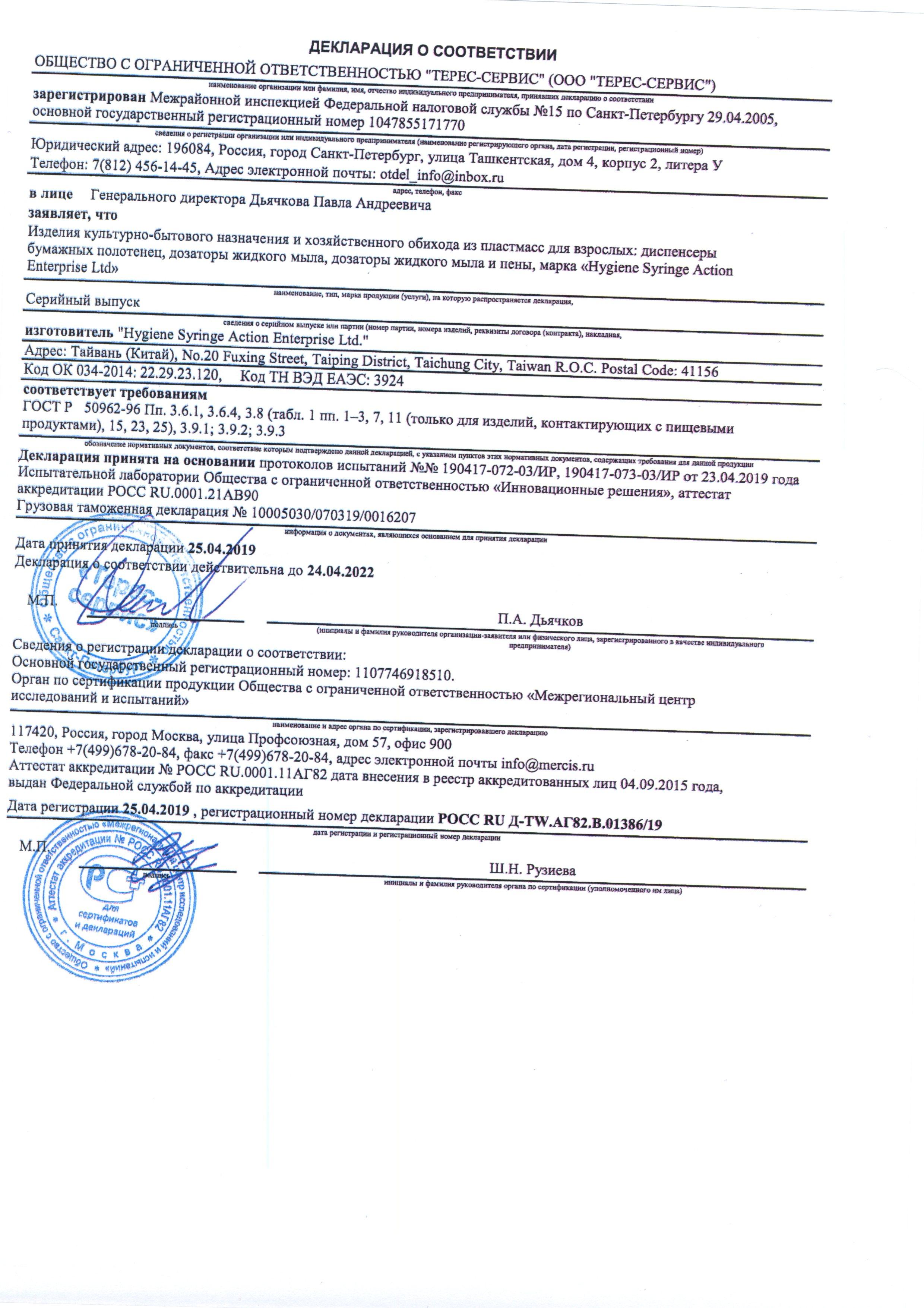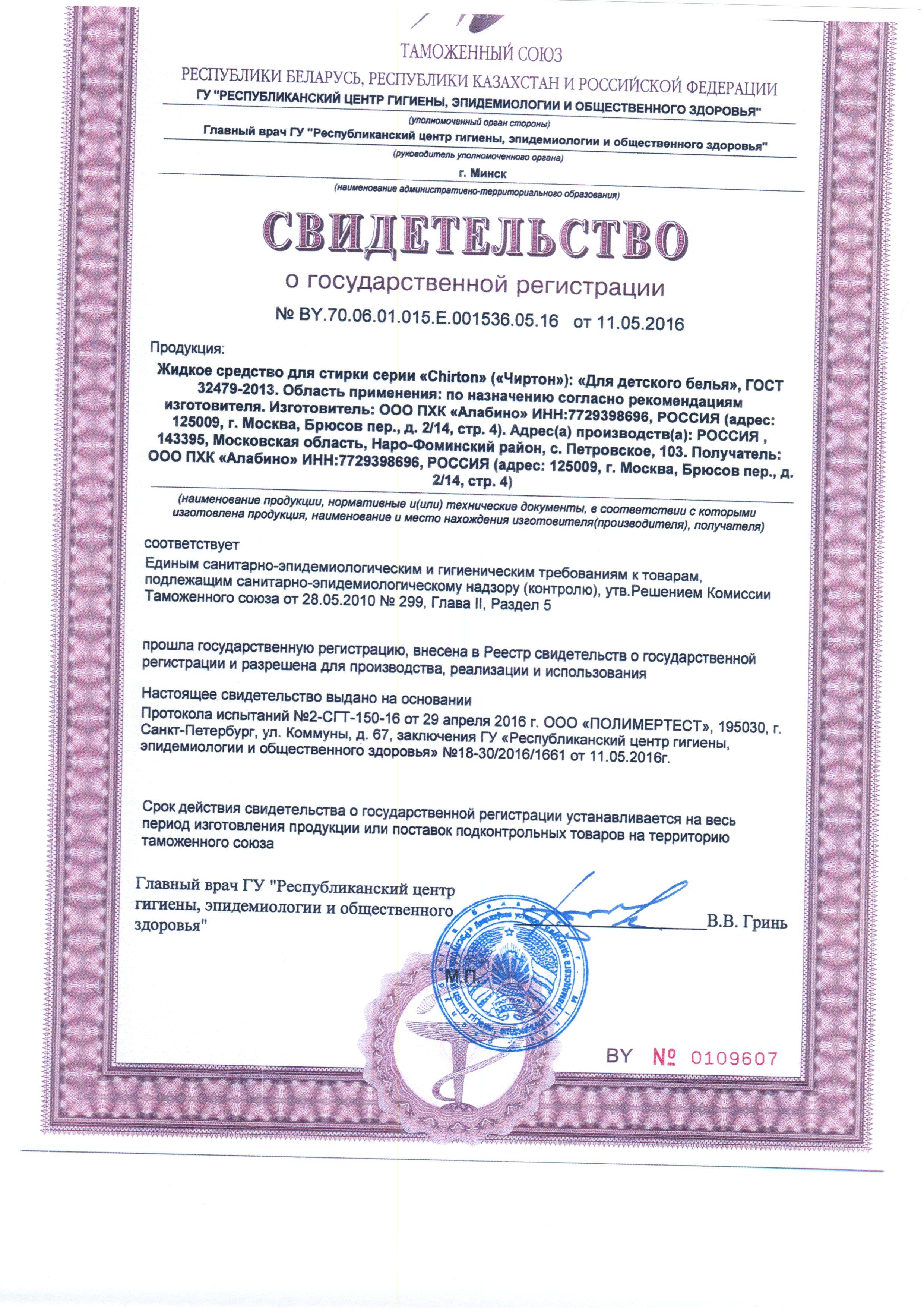 Сертификат на товар - Жидкость для стирки детского белья Chirton 1.325 л