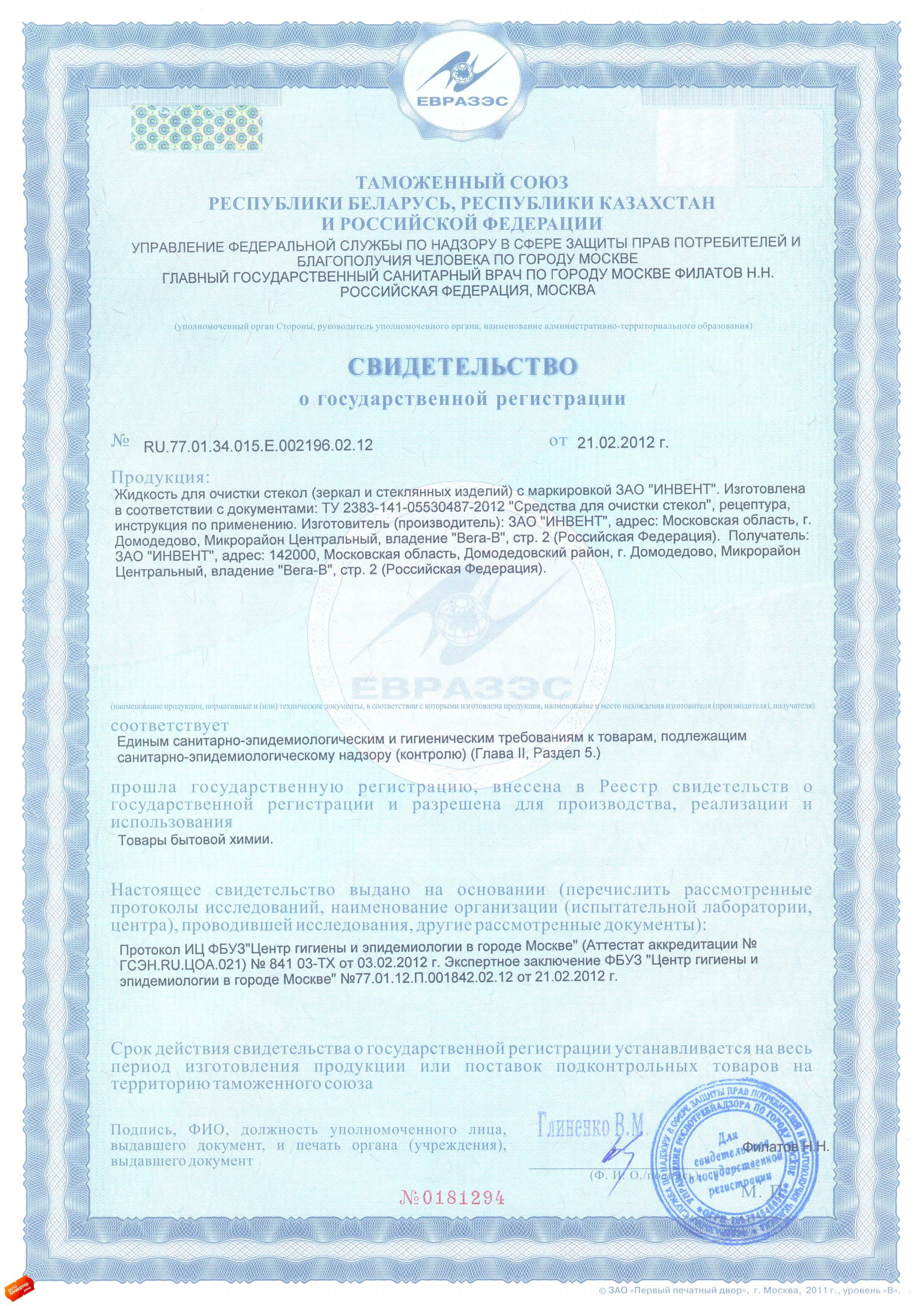 Сертификат на товар - Средство для стекол и зеркал Chirton Window Cleaner 500 мл