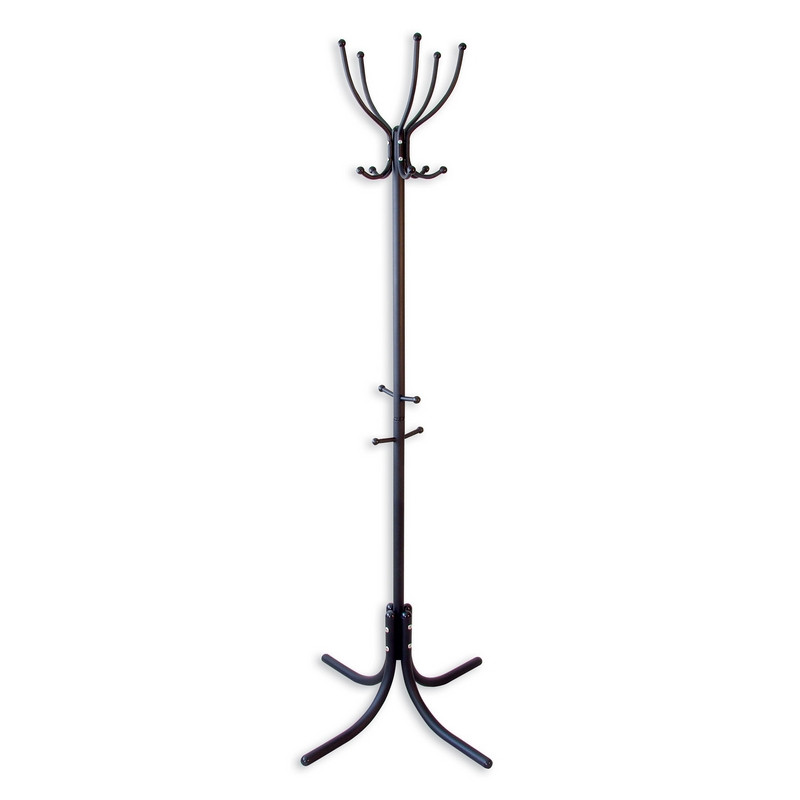 Напольная вешалка высотой 178 см выполнена из металла с покрытием черного цвета. Размер основания - 70x70 см. Не занимает много места, подходит для дома и офиса. В верхней частиштанги-стойки расположены крючки и рожки для пяти предметов одежды и головных уборов. Также имеются четыре держателя для зонтов и сумок.Изображения товаров на сайте не могут гарантировать точную цветопередачу.