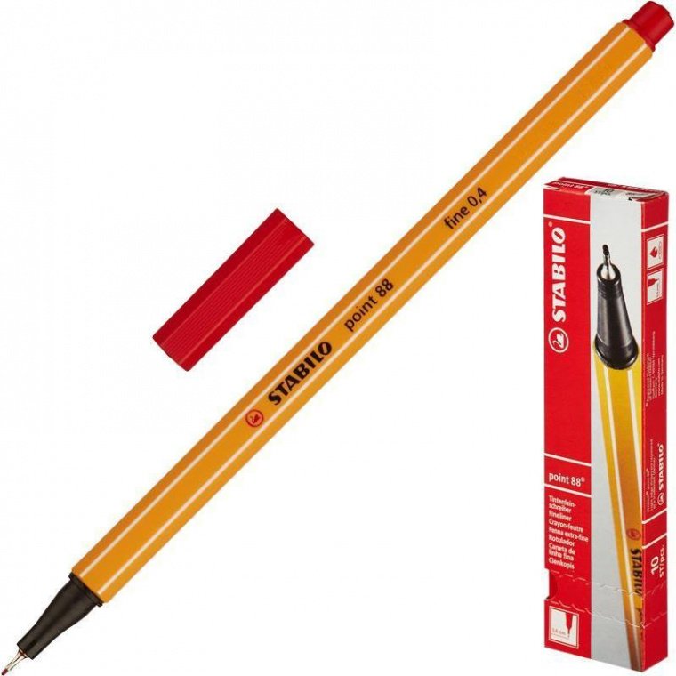 Ручка-линер Stabilo Point в пластиковом корпусе желтого цвета с колпачком и износостойким наконечником. Чернила красного цвета на водной основе обеспечивают четкие, тонкие и яркие линии, не просачиваясь сквозь бумагу. Толщина линии — 0,4 мм. Линер оптимален для черчения и графических работ, не требует усилий при работе. Не оставляет следов на линейках и трафаретах благодаря металлическому стержню. Возможности смены стержня нет.